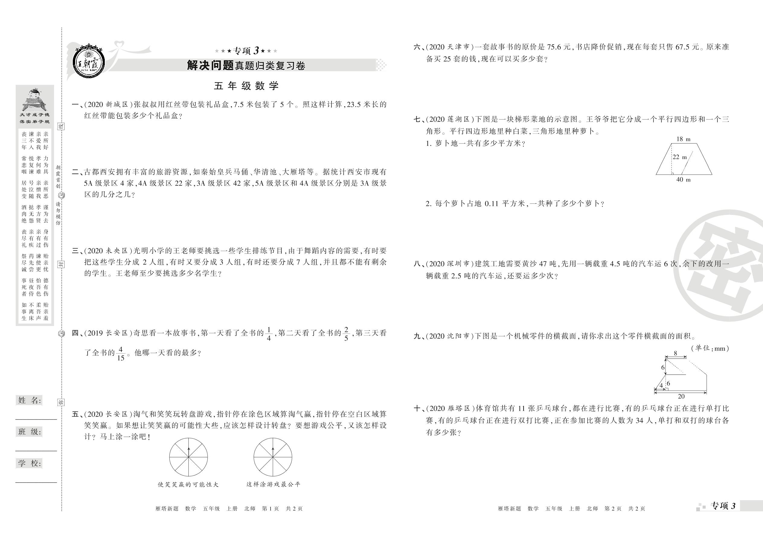 王朝霞期末专项卷——解决问题真题归类复习、新颖题速递:生活与数学五年级上册数学(北师版)_R210804163827【0】