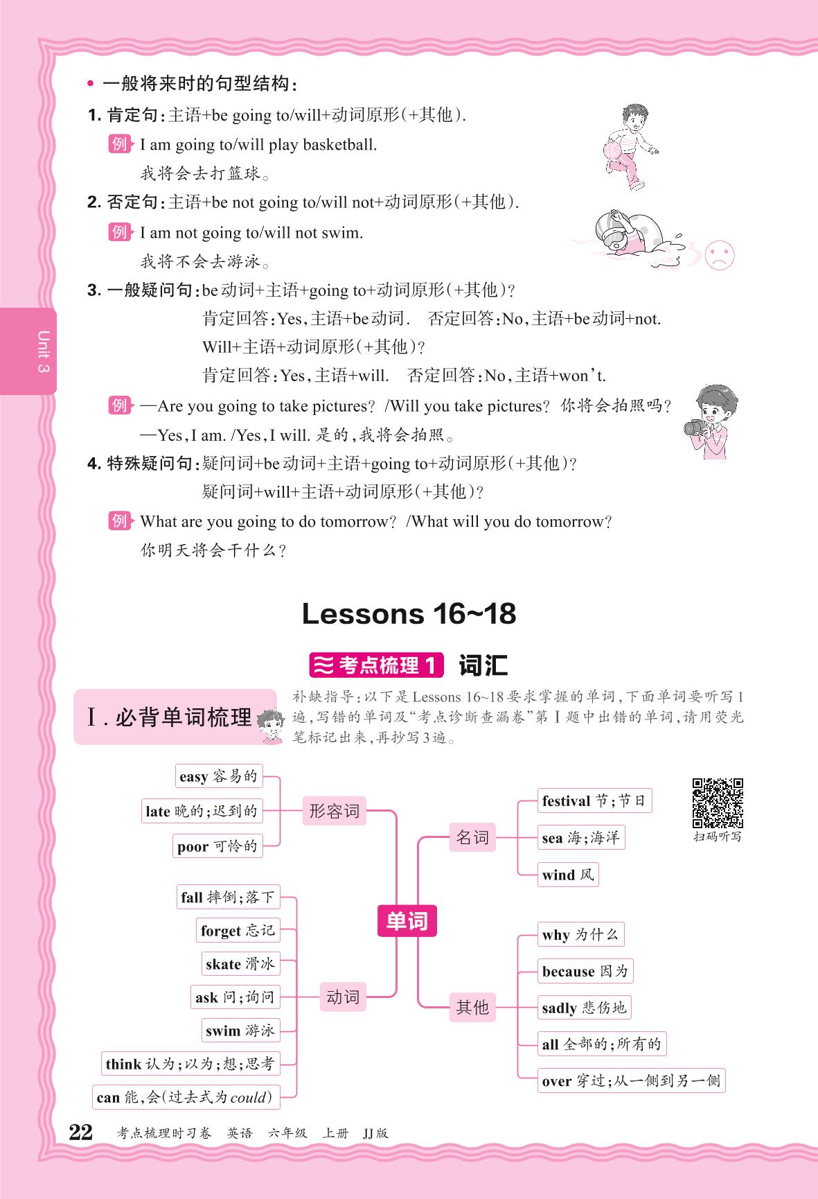 2024秋上册六年级英语冀教版 考点梳理补缺手册——Unit 3 Lessons 16~18