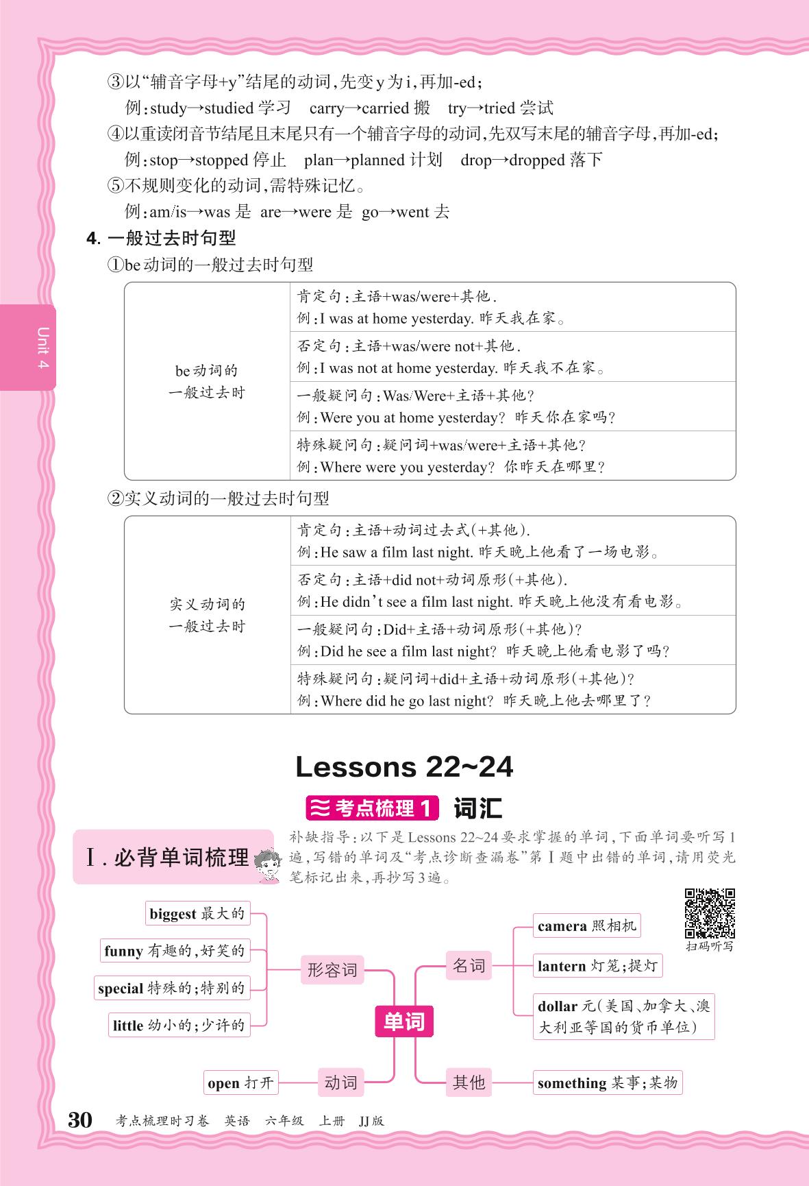 2024秋上册六年级英语冀教版 考点梳理补缺手册——Unit 4 Lessons 22~24