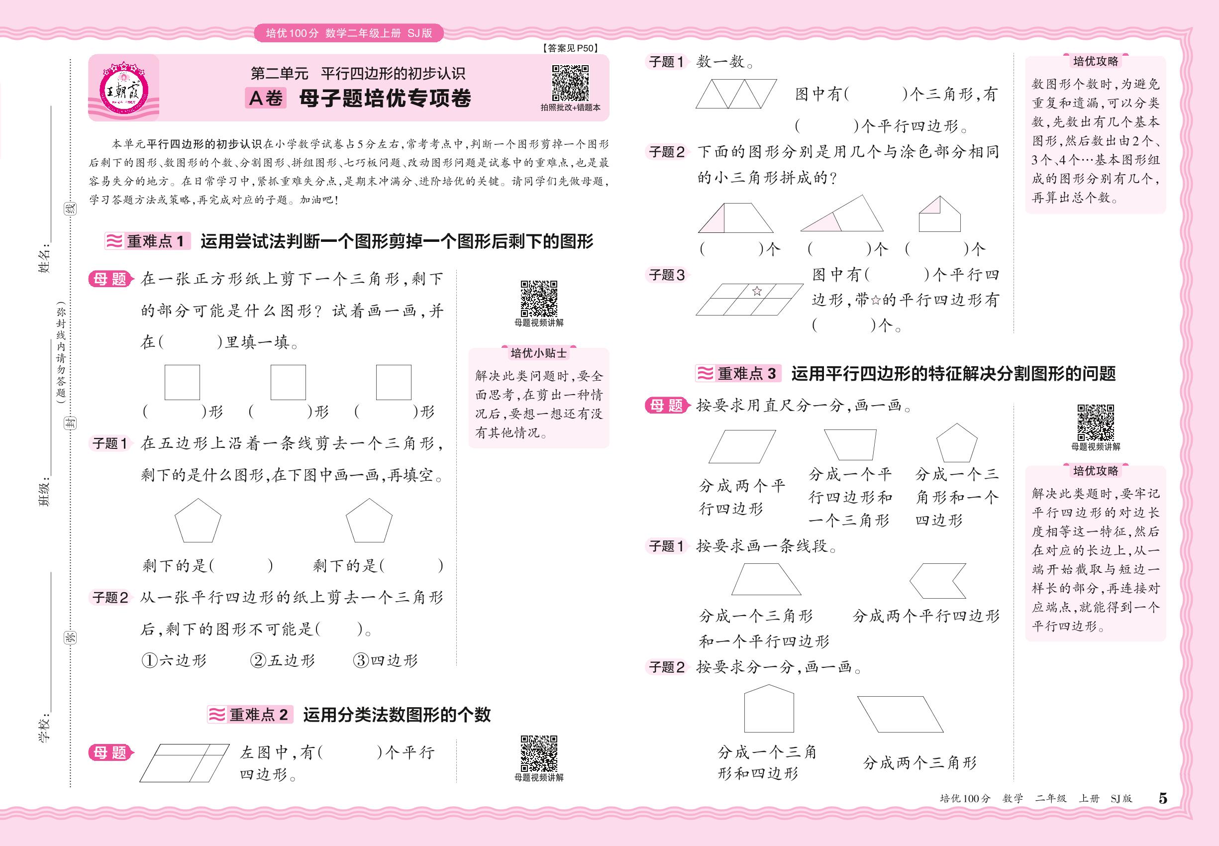 2024秋上册二年级数学苏教版 第二单元A卷 母子题培优专项卷