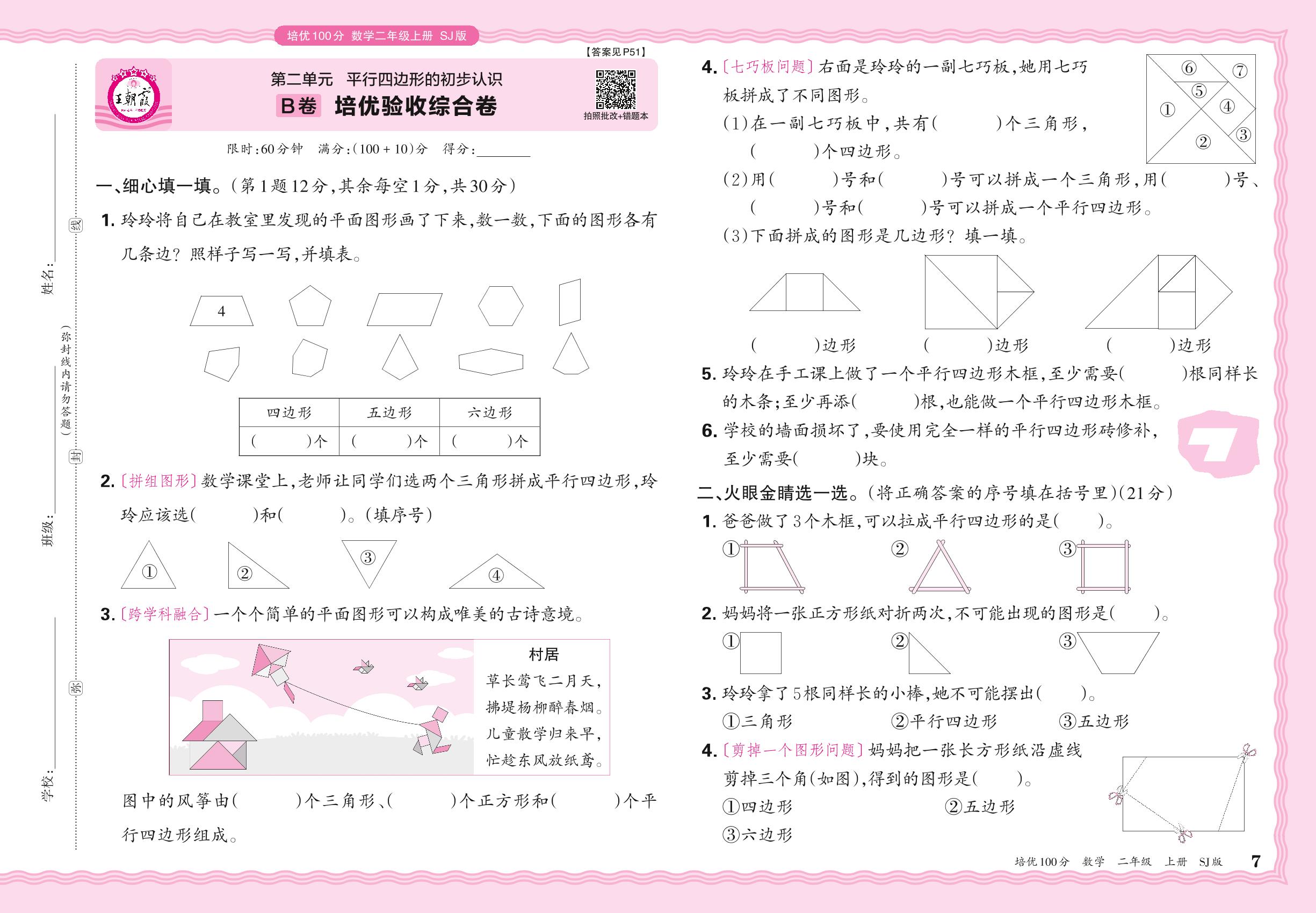 2024秋上册二年级数学苏教版 第二单元B卷 培优验收综合卷