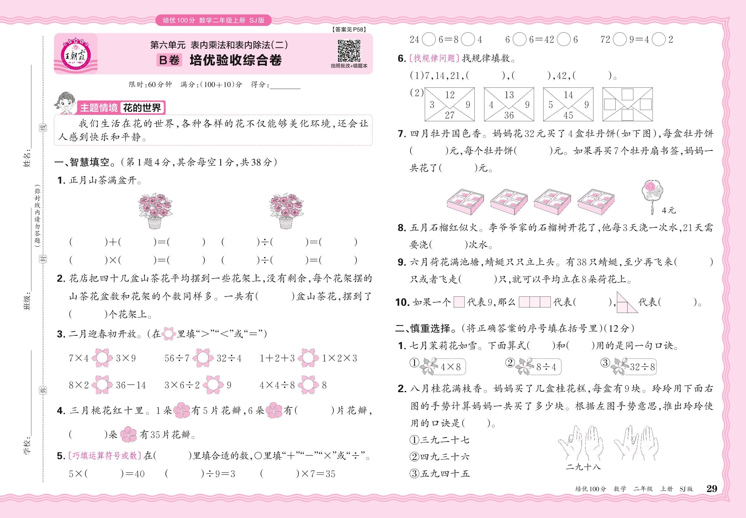 2024秋上册二年级数学苏教版 第六单元B卷 培优验收综合卷