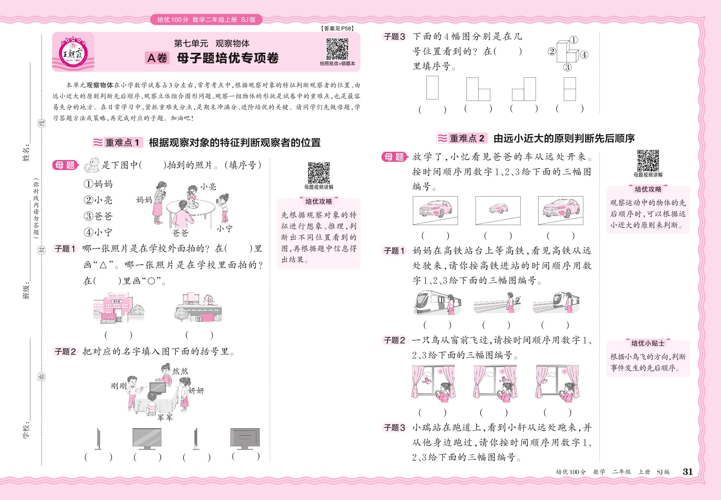 2024秋上册二年级数学苏教版 第七单元A卷 母子题培优专项卷