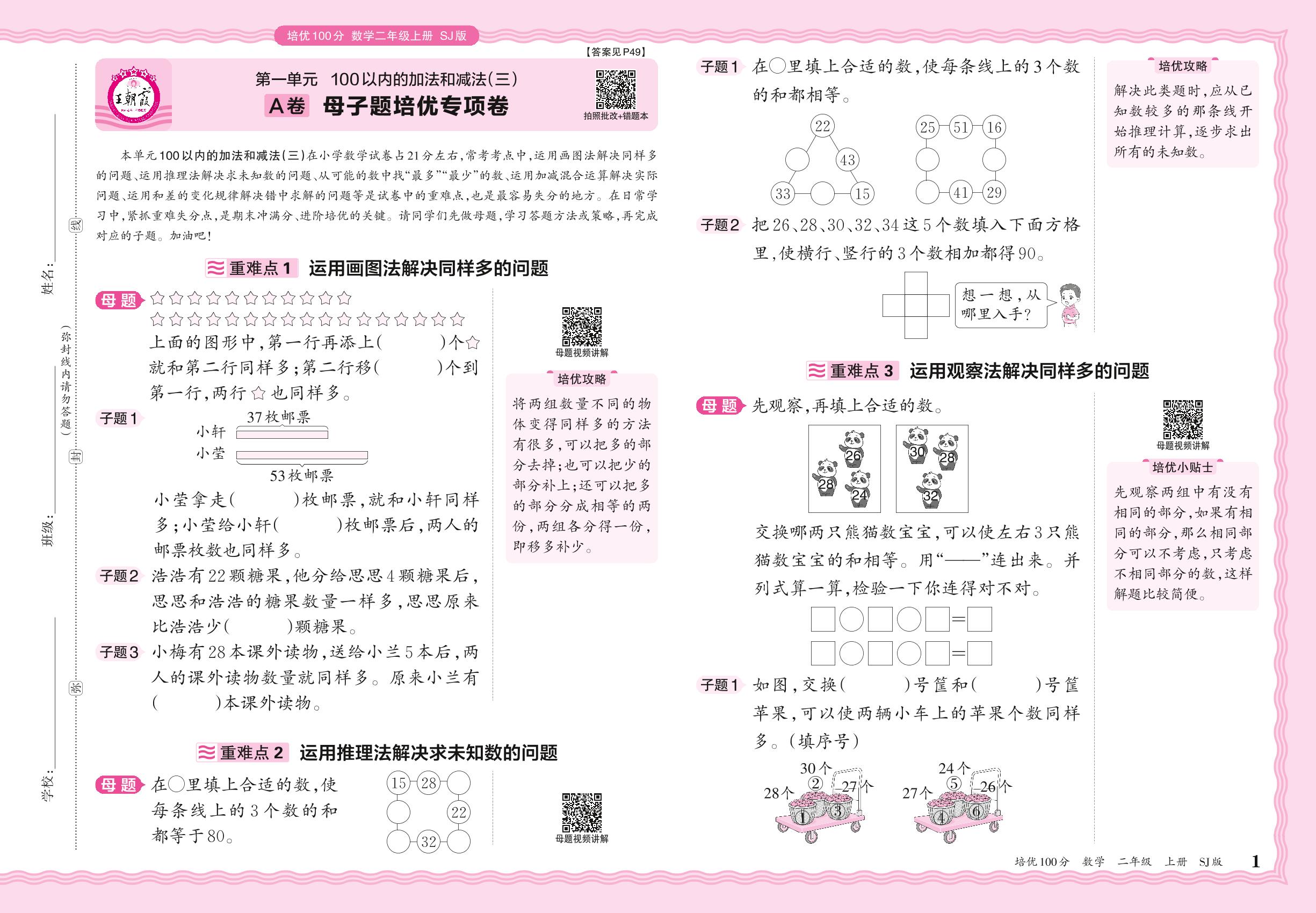 2024秋上册二年级数学苏教版 第一单元A卷 母子题培优专项卷