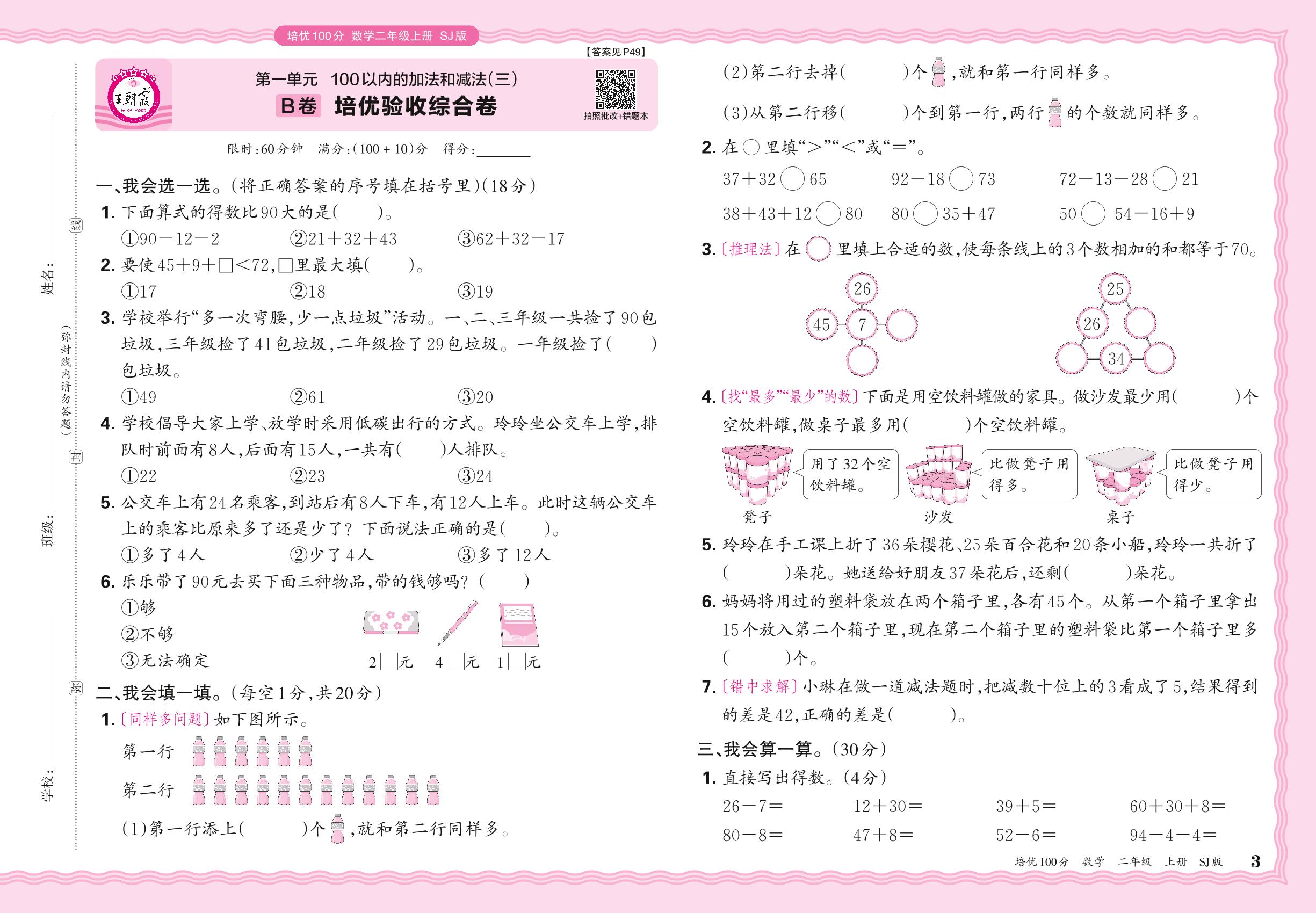2024秋上册二年级数学苏教版 第一单元B卷 培优验收综合卷