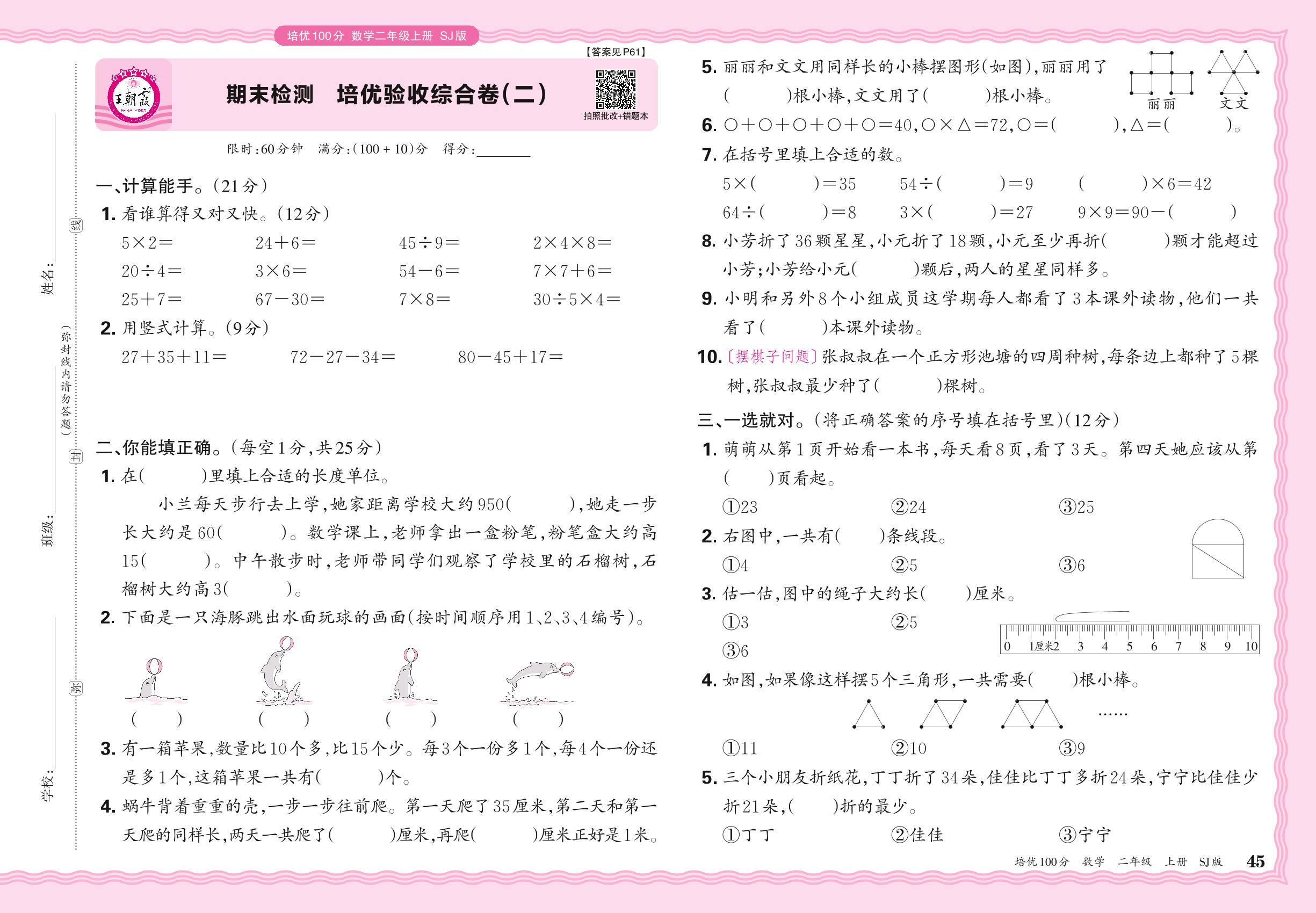 2024秋上册二年级数学苏教版 期末检测 培优验收综合卷(二)