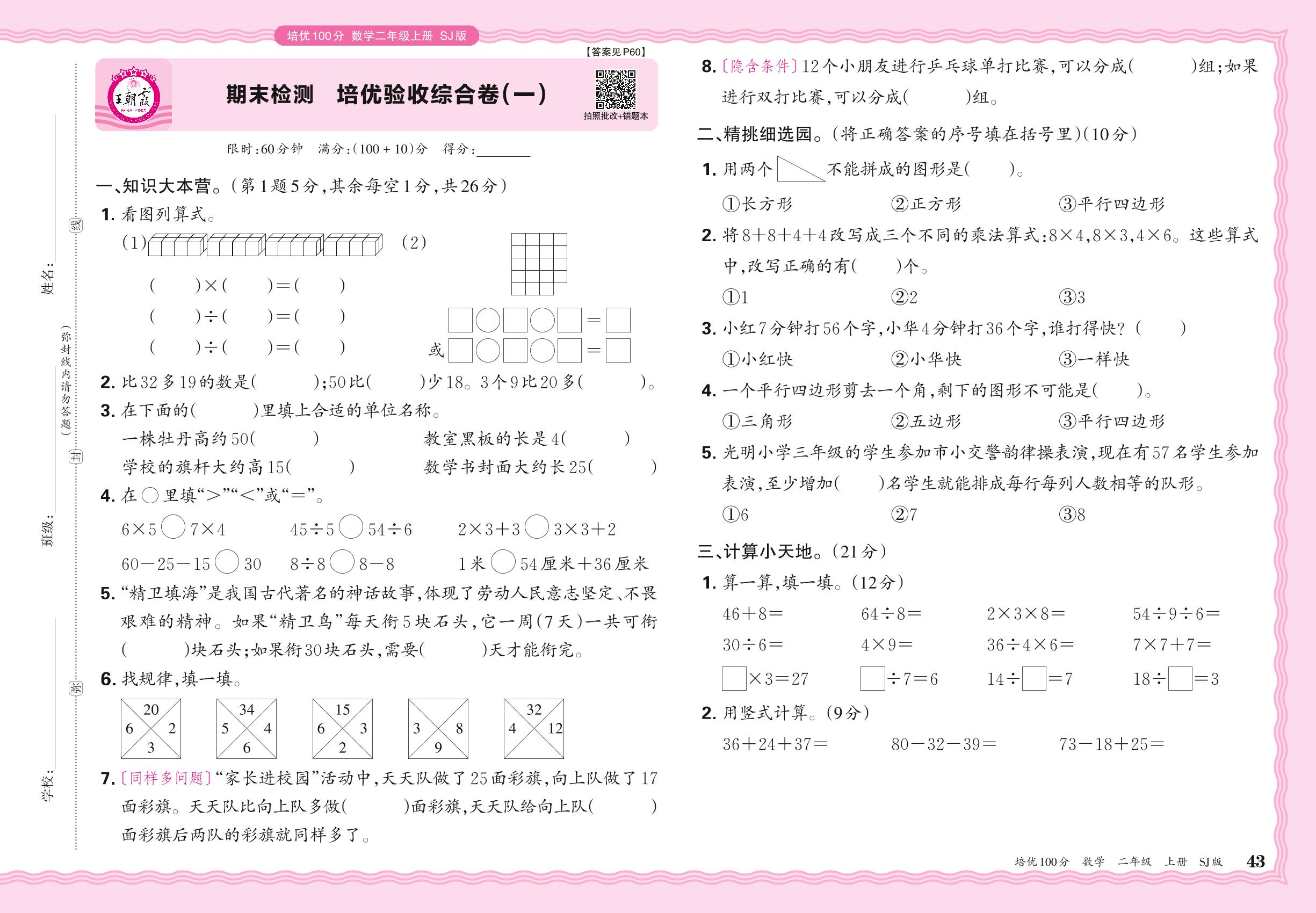 2024秋上册二年级数学苏教版 期末检测 培优验收综合卷(一)