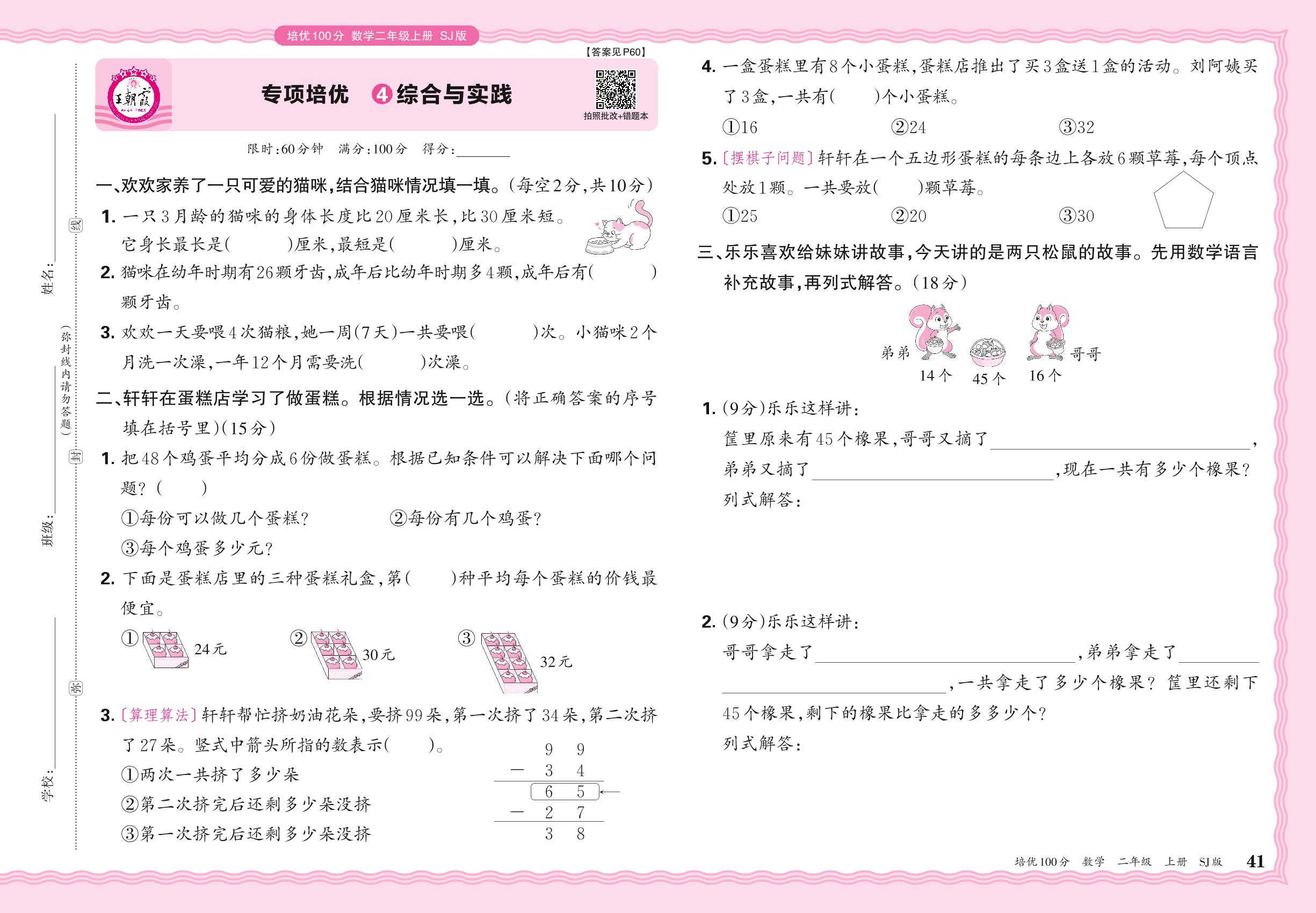 2024秋上册二年级数学苏教版 期末专项卷PY版·综合与实践【4】