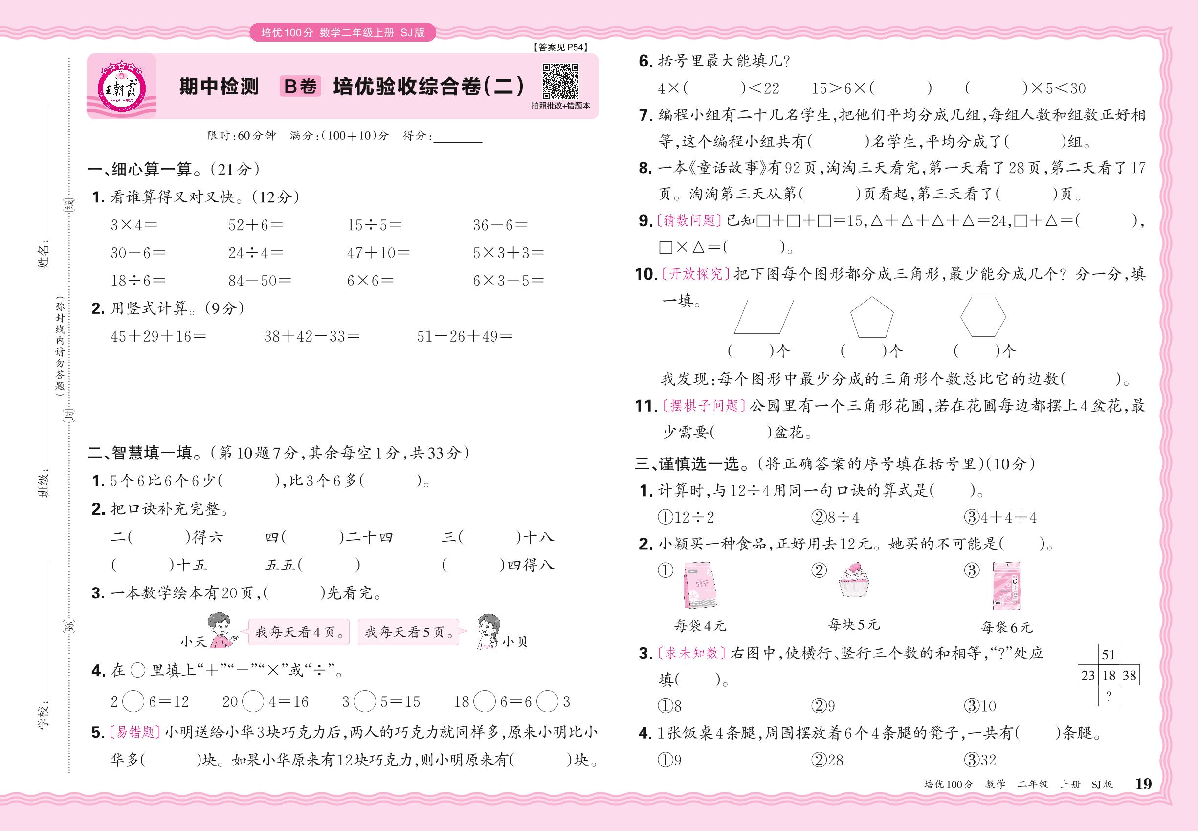 2024秋上册二年级数学苏教版 期中检测B卷 培优验收综合卷(二)