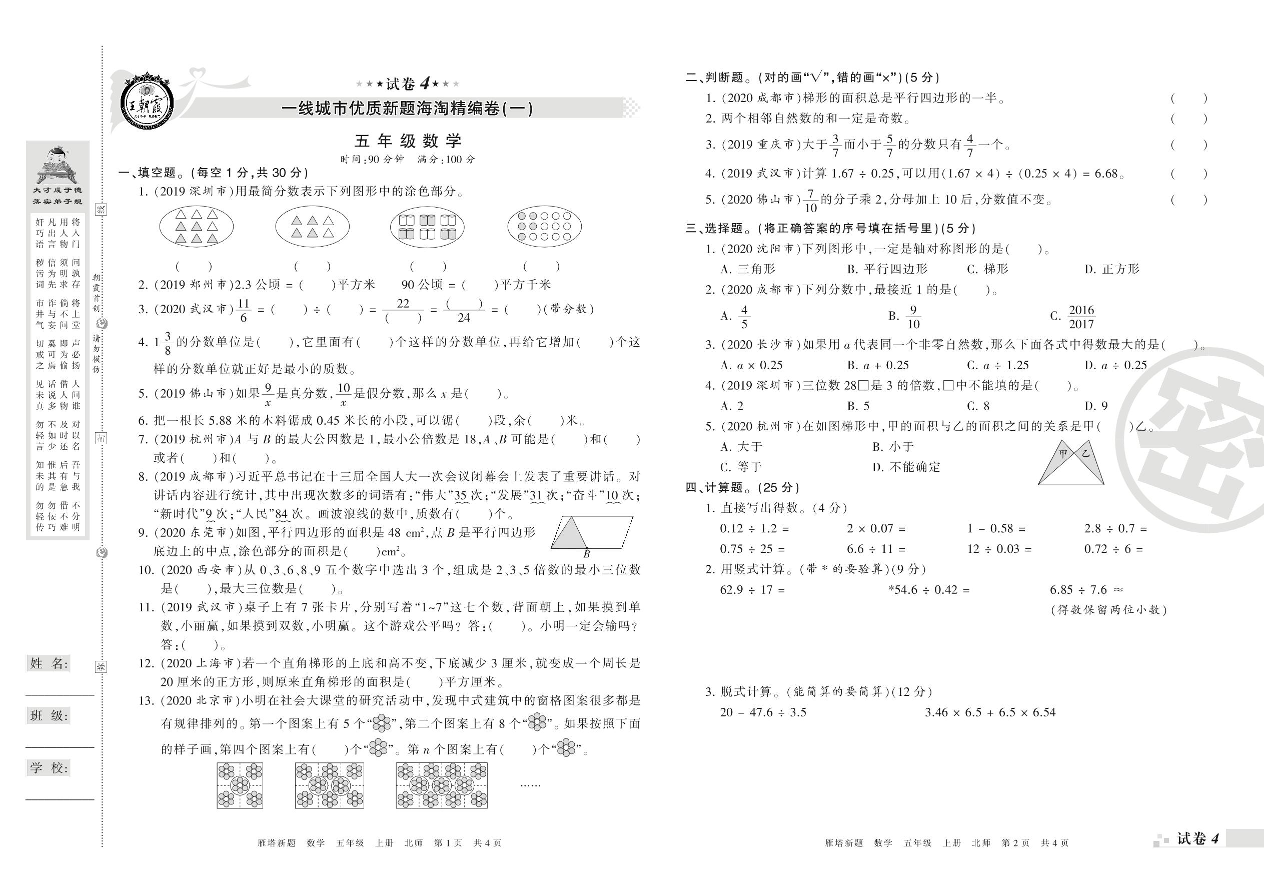 王朝霞海淘期末精编卷五年级上册数学(北师版)【4】