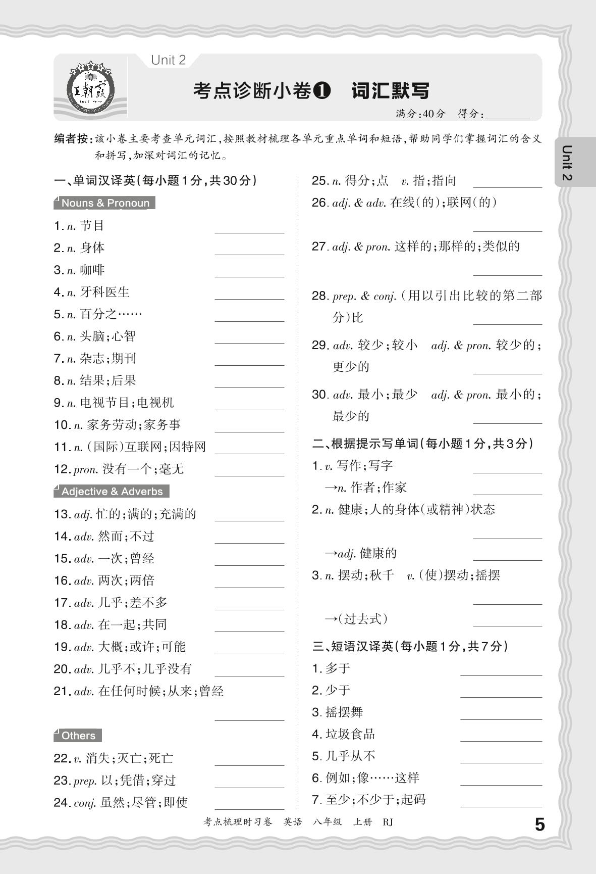 2024秋上册八年级英语人教版 Unit 2 考点诊断小卷1 词汇默写_R240827102311900