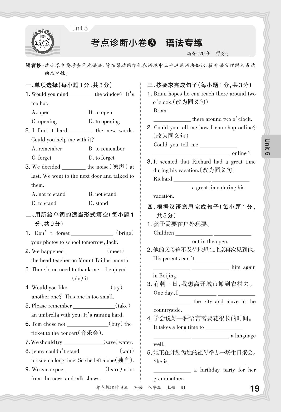 2024秋上册八年级英语人教版 Unit 5 考点诊断小卷3 语法专练_R240827102317660
