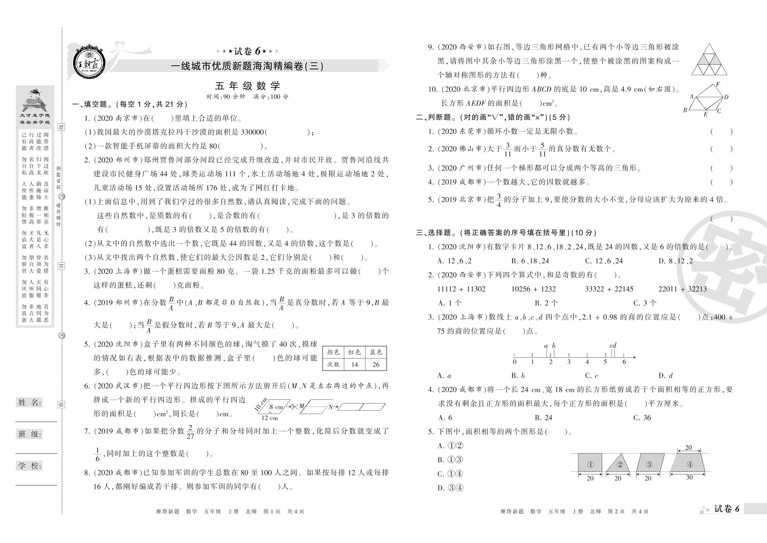 王朝霞海淘期末精编卷五年级上册数学(北师版)【6】