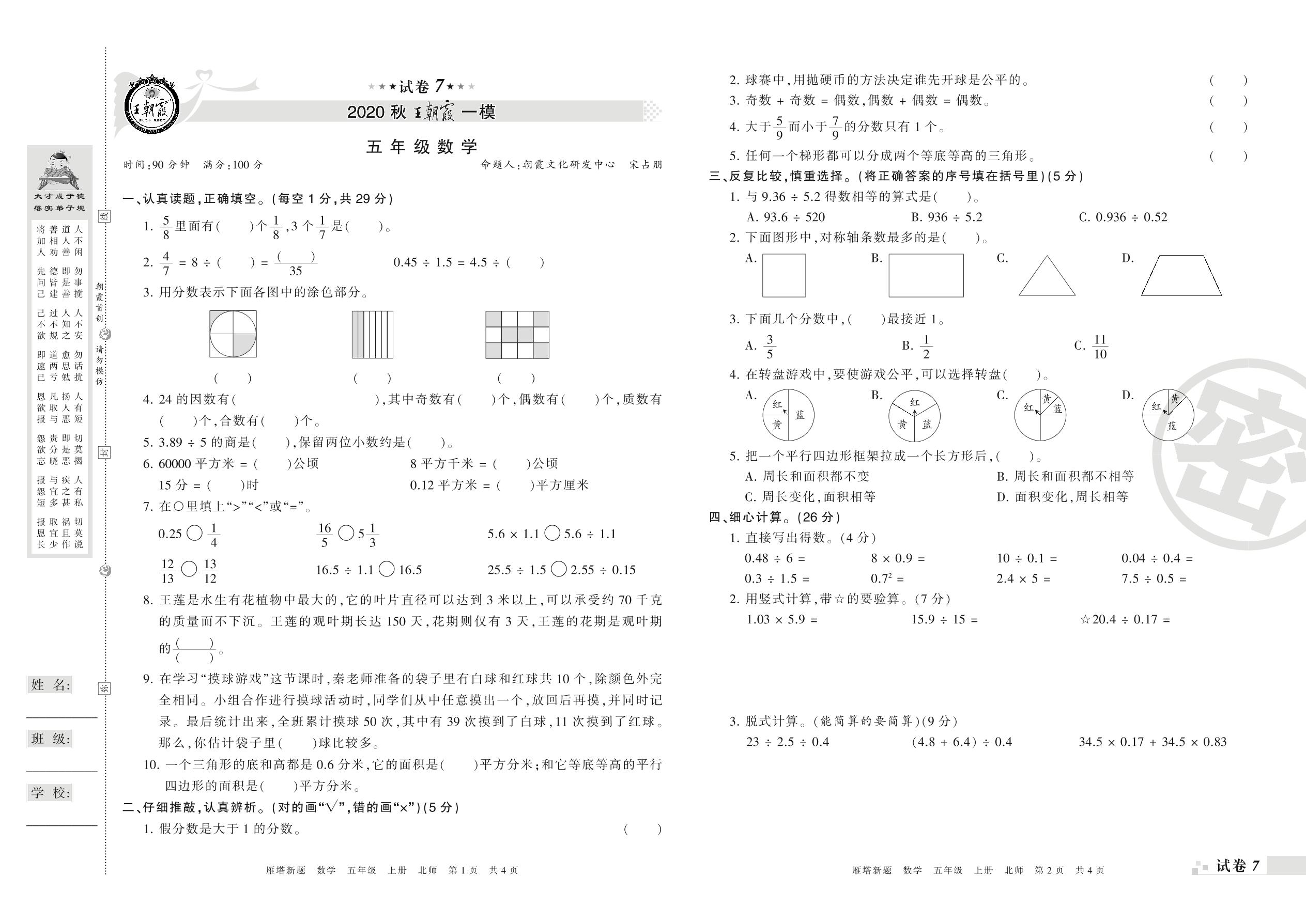 王朝霞期末模拟卷五年级上册数学(北师版)_R210804163851【7】
