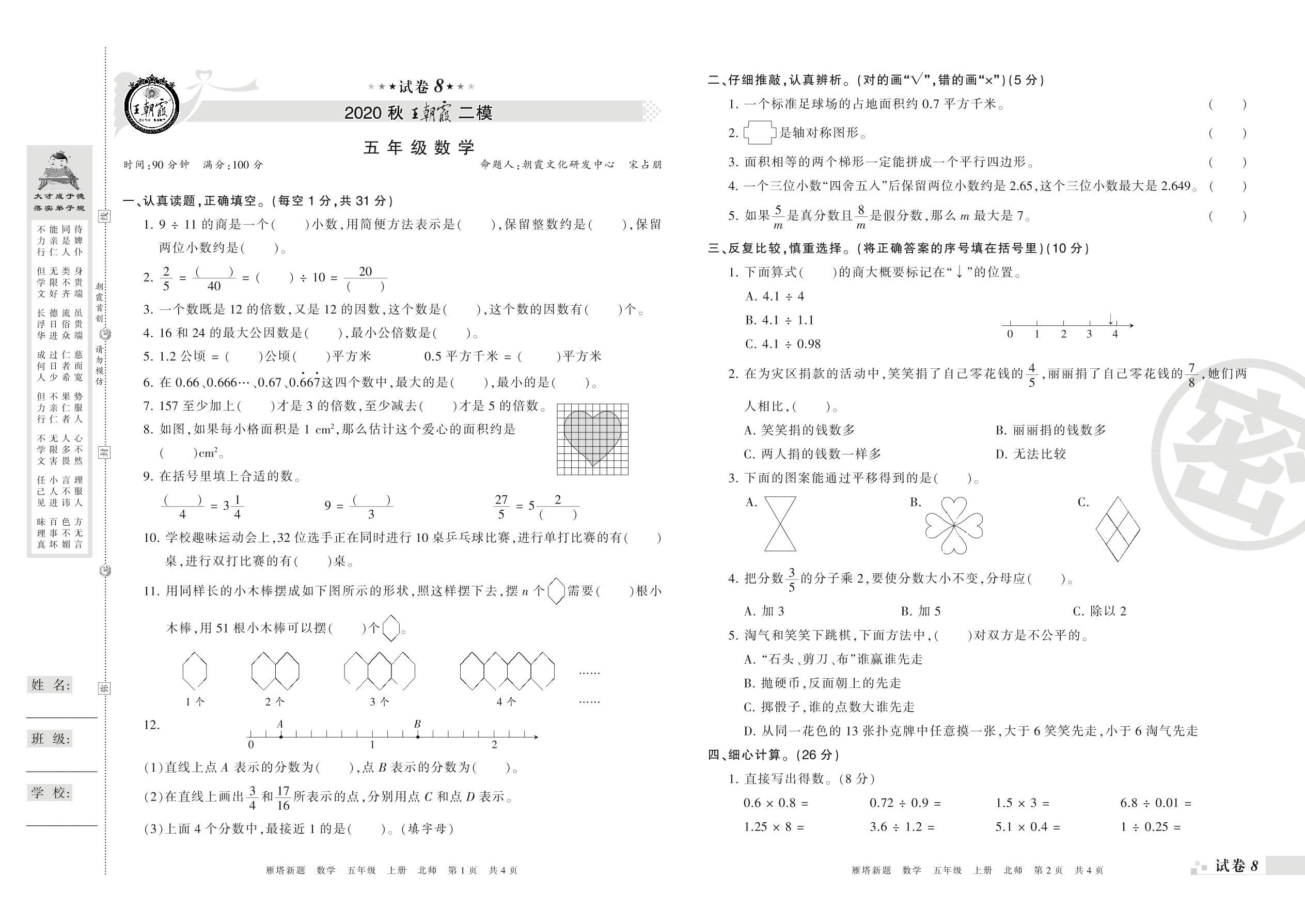 王朝霞期末模拟卷五年级上册数学(北师版)_R210804163855【8】