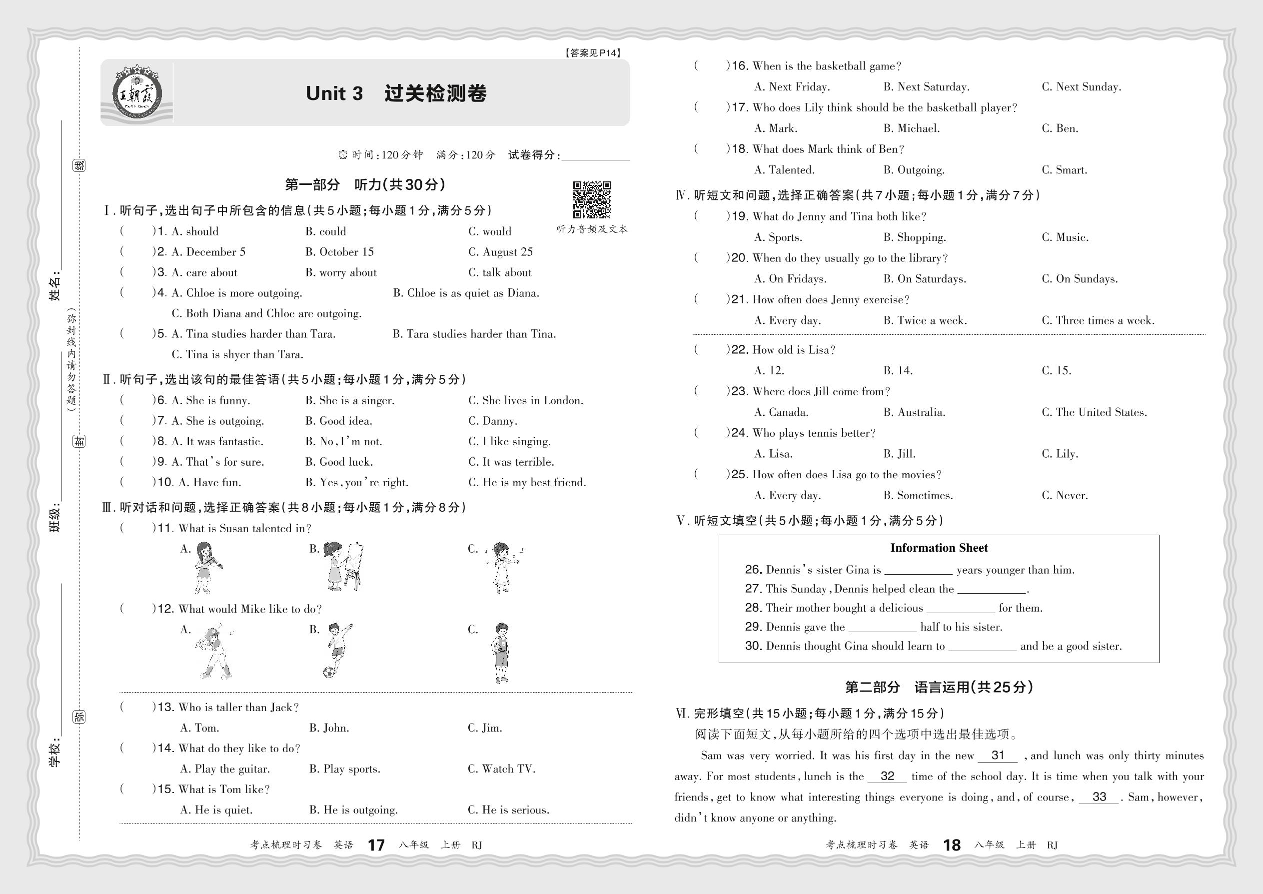 八年级英语人教版上册单元卷