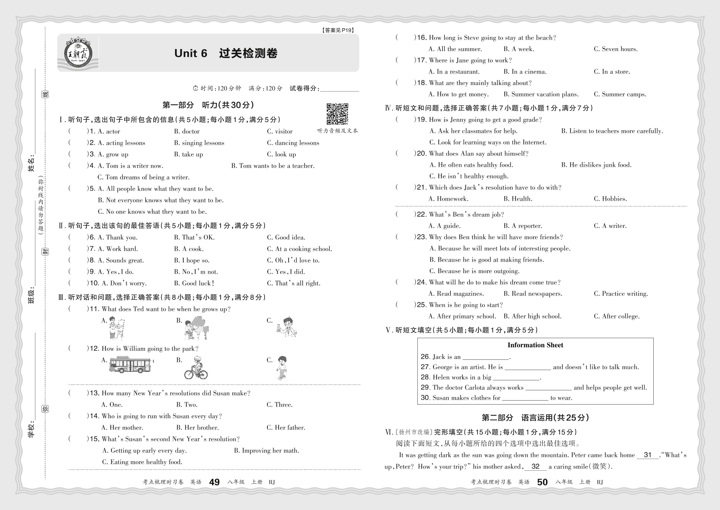 2024秋上册八年级英语人教版 Unit 6 过关检测卷_R240827102330237