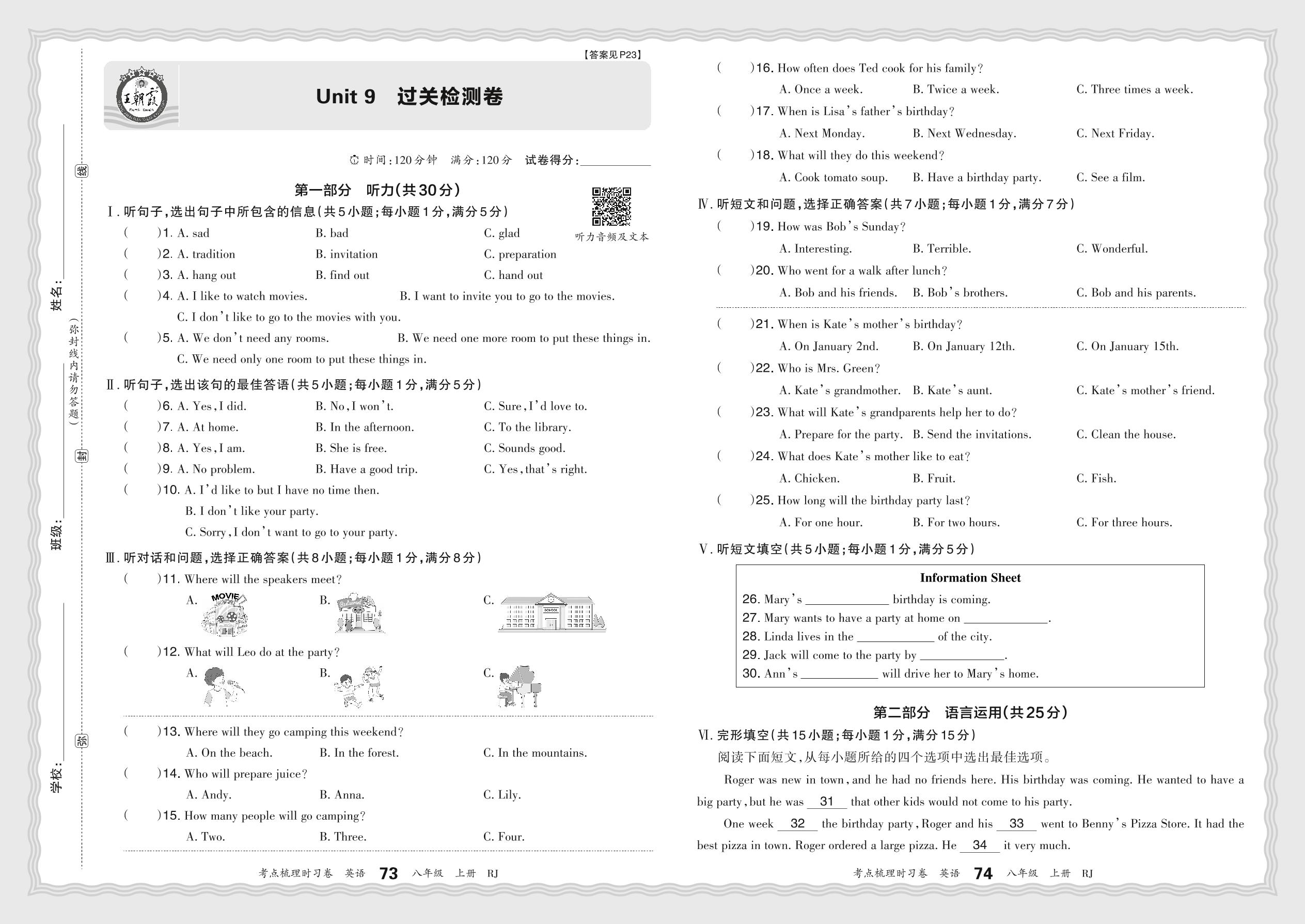 2024秋上册八年级英语人教版 Unit 9 过关检测卷_R240827102331819