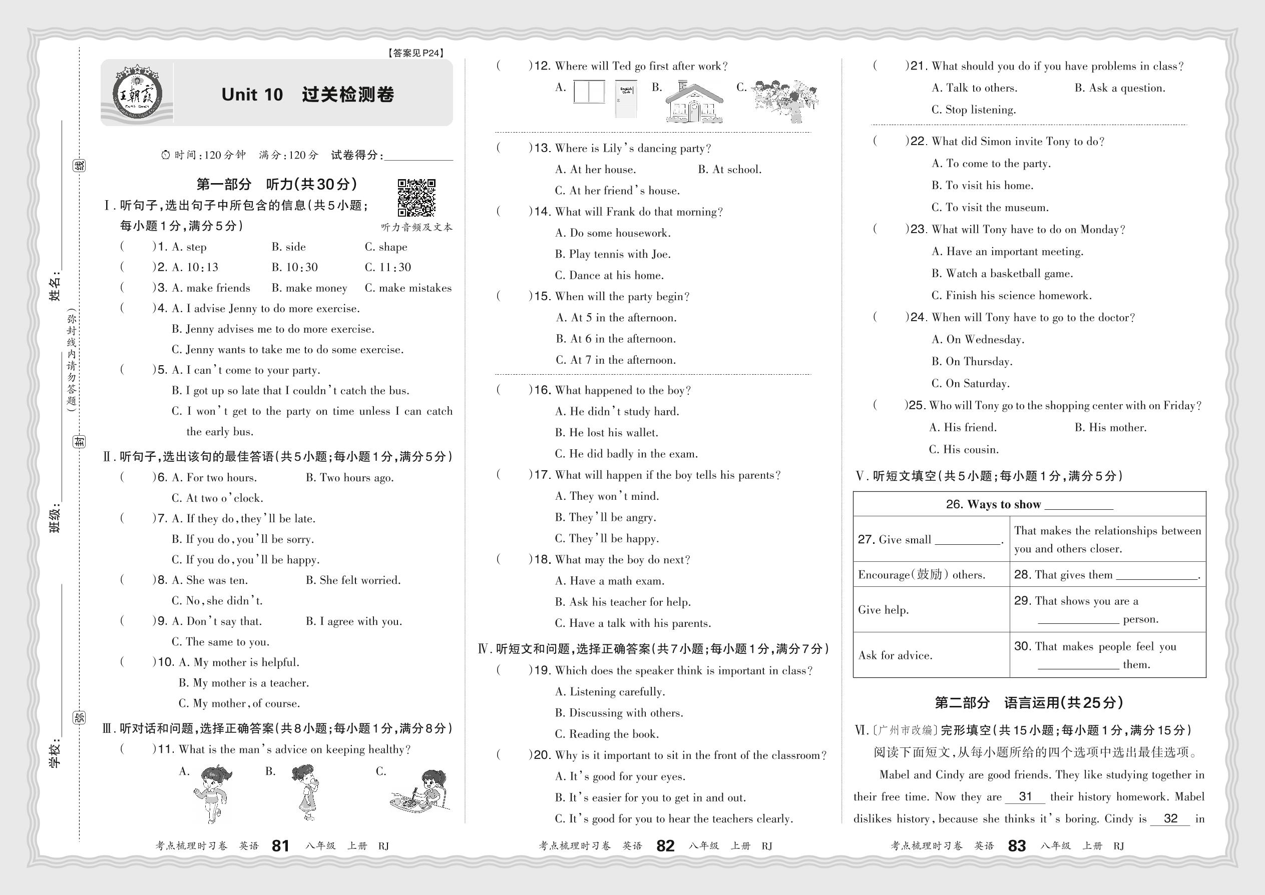 2024秋上册八年级英语人教版 Unit 10 过关检测卷_R240827102333292