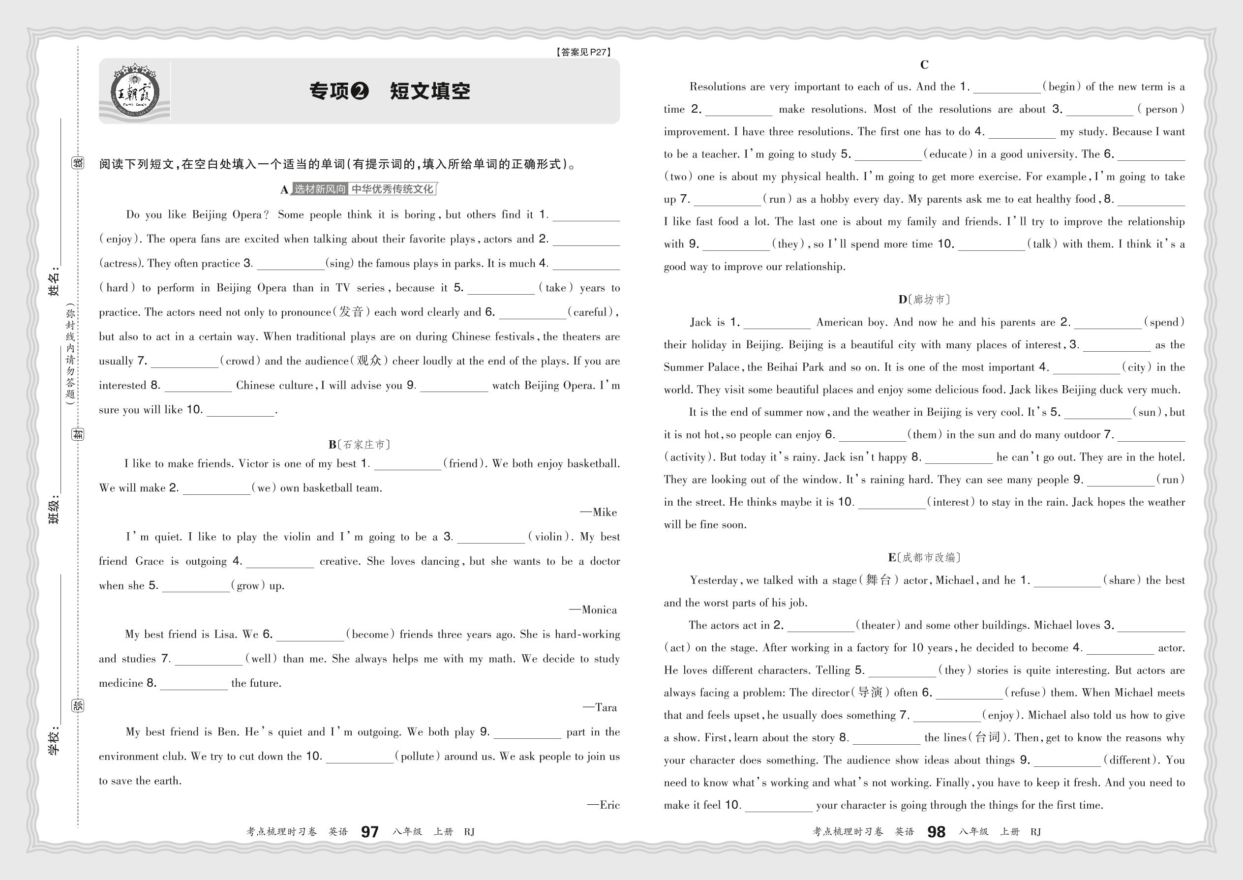 2024秋上册八年级英语人教版 期末专项卷KD版·短文填空【2】