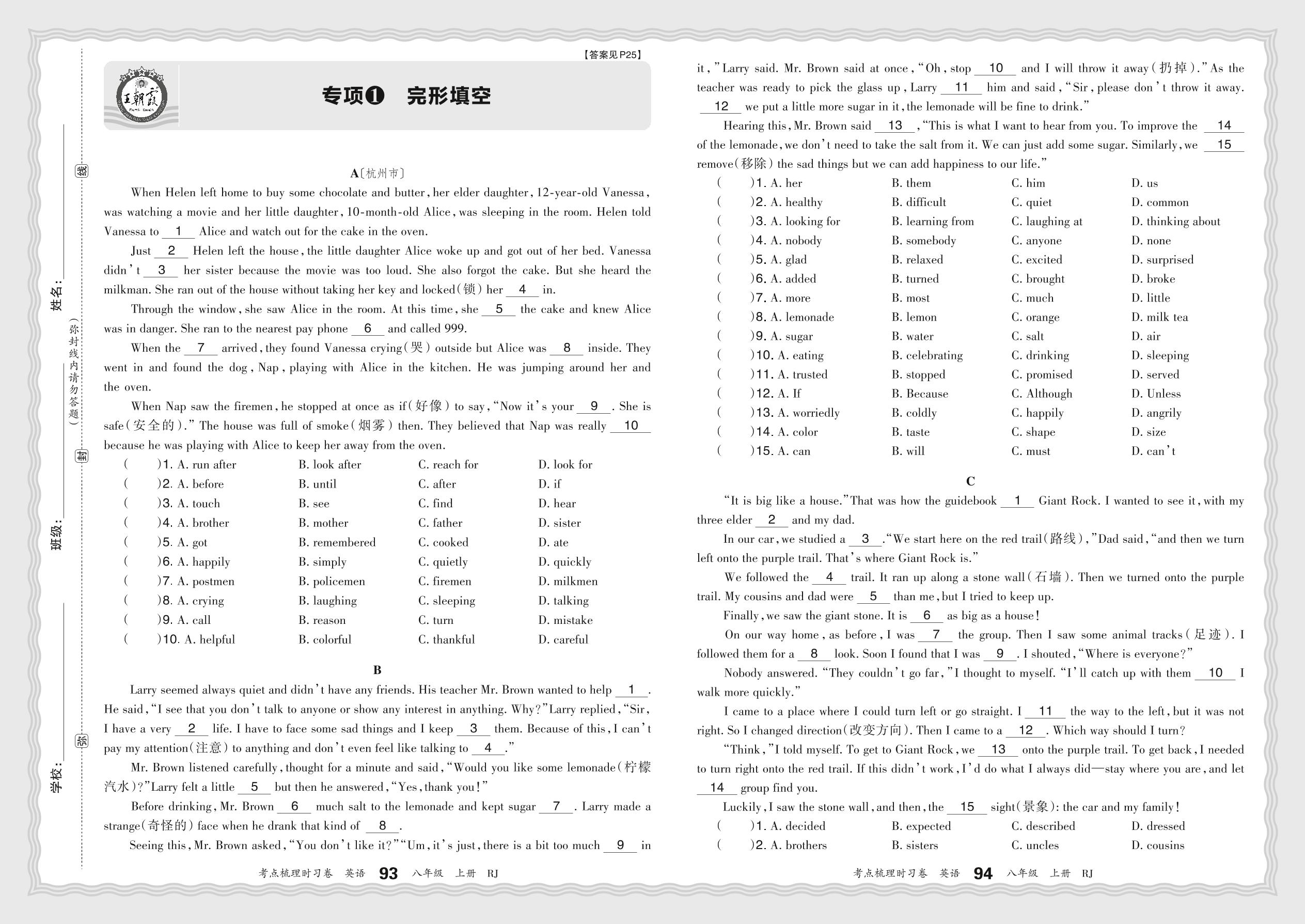 2024秋上册八年级英语人教版 期末专项卷KD版·完形填空【1】