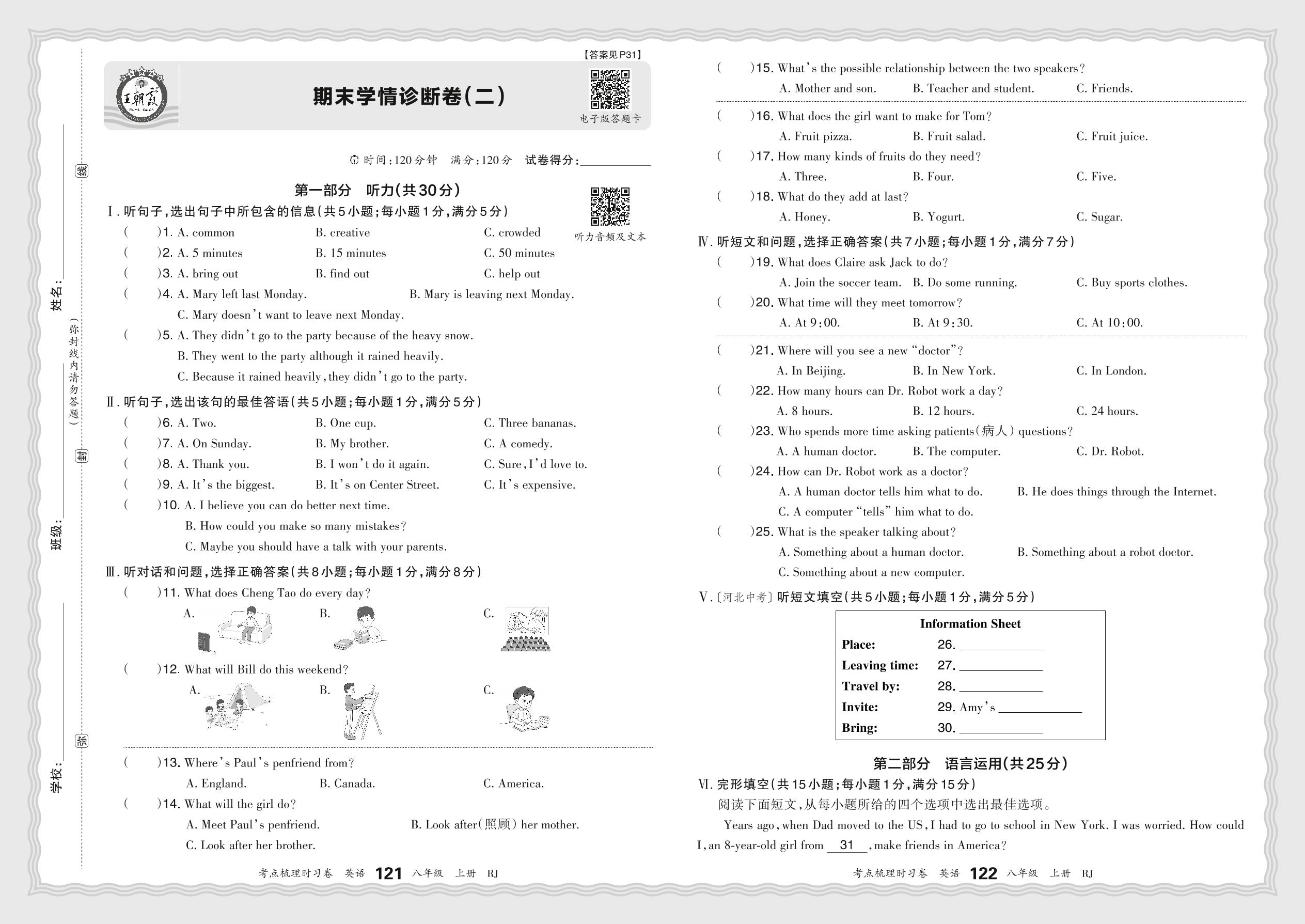 八年级英语人教版上册期末卷