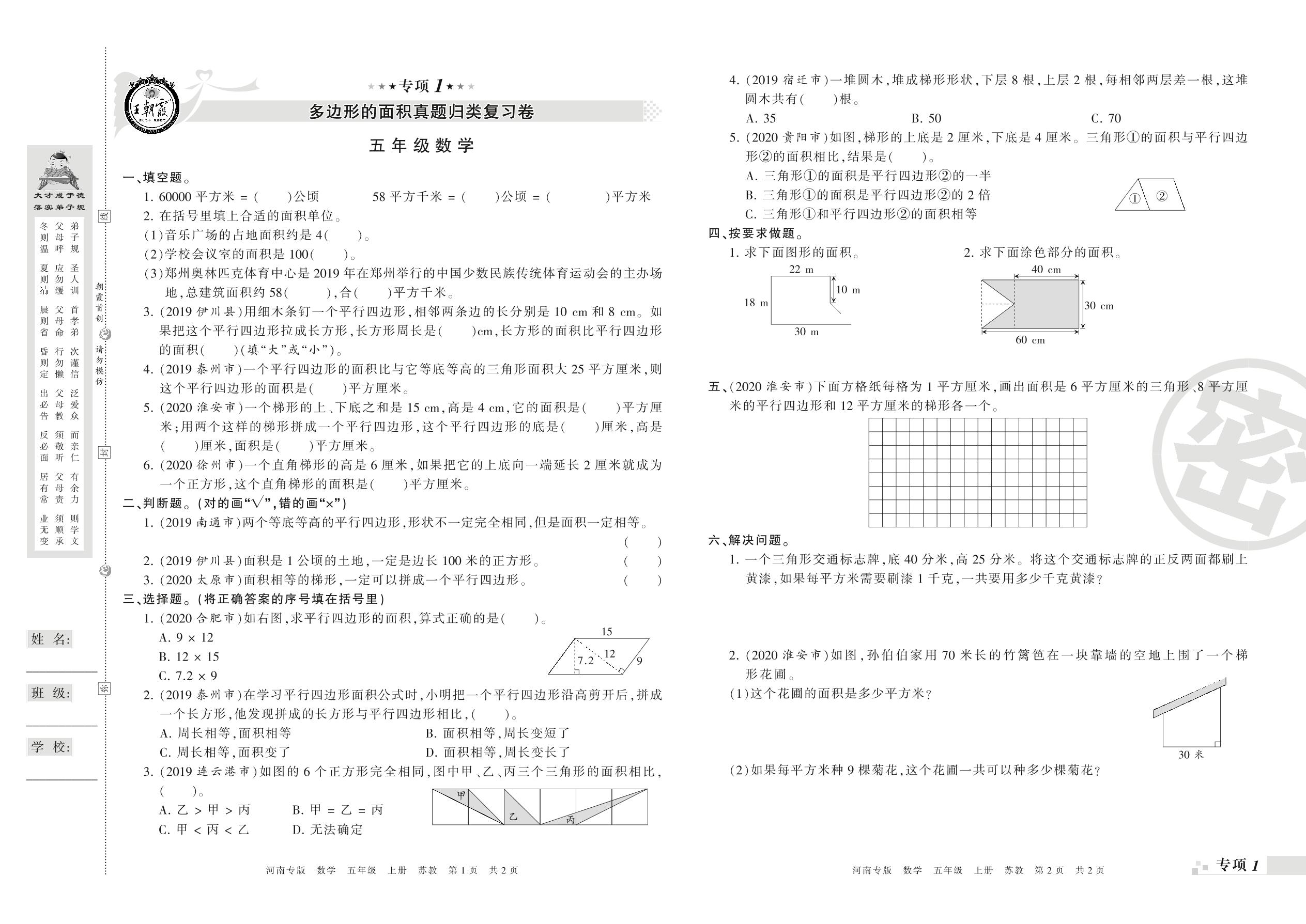 王朝霞期末专项卷——多边形的面积、小数的意义和性质及小数加法和减法真题归类复习五年级上册数学(苏教版)【0】