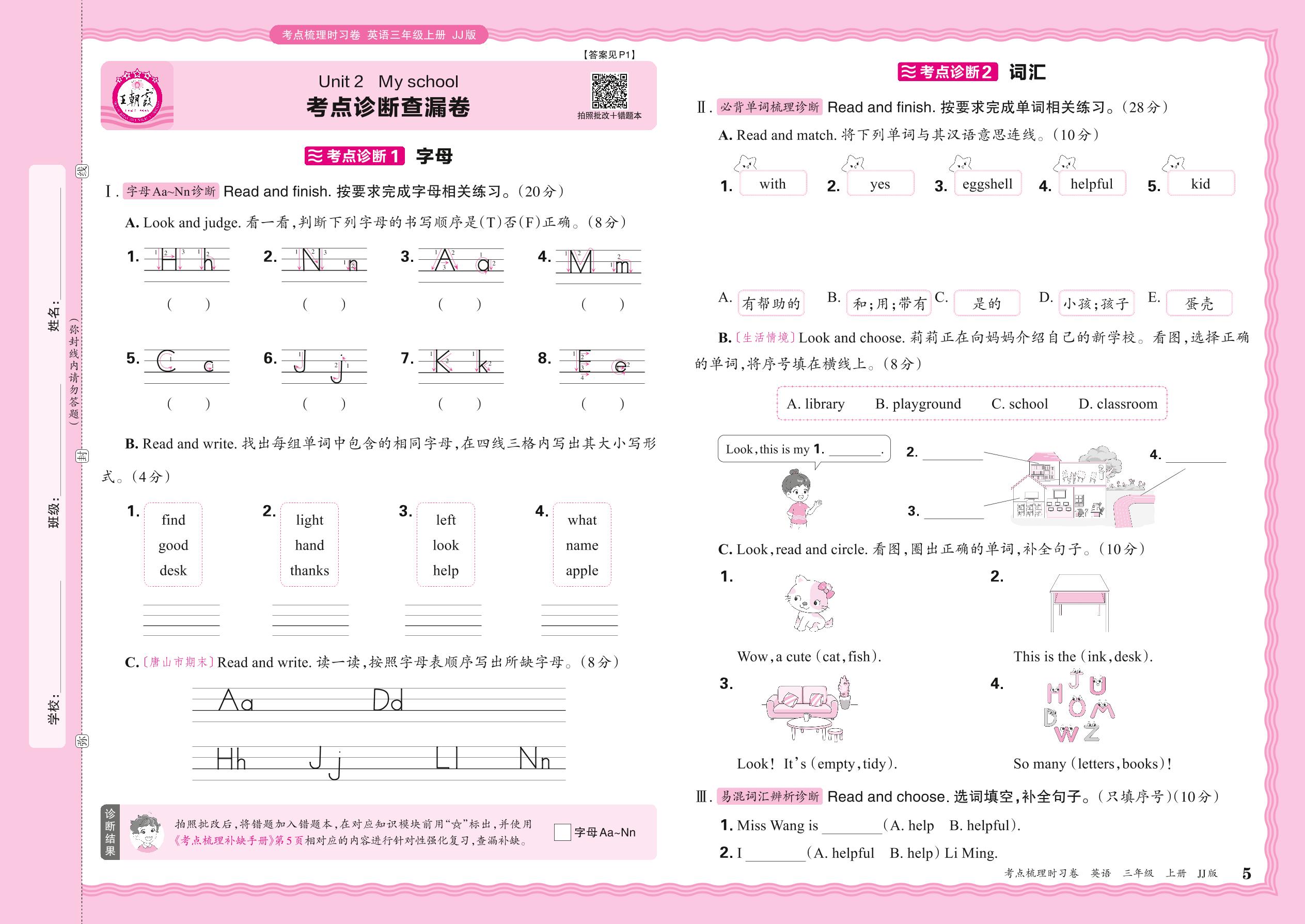 2024秋上册三年级英语冀教版 Unit 2 考点诊断查漏卷