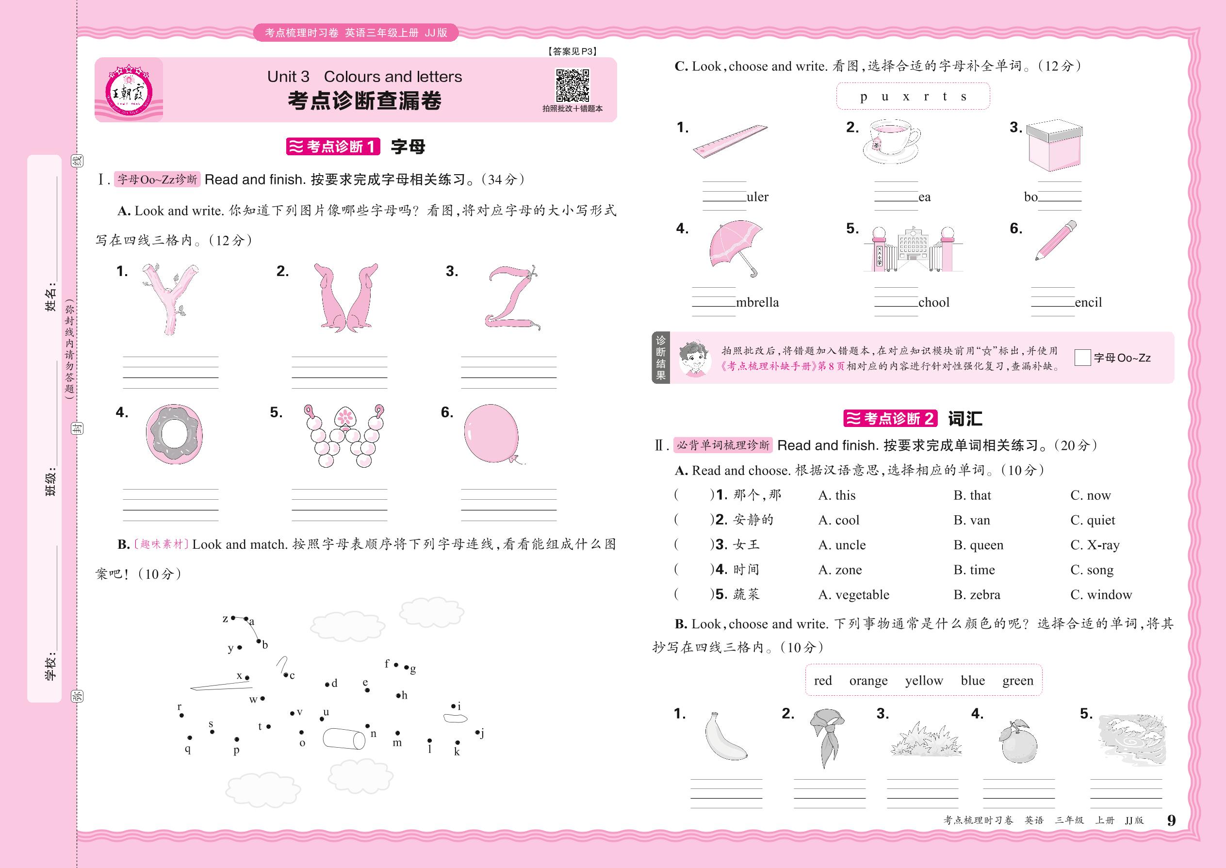 2024秋上册三年级英语冀教版 Unit 3 考点诊断查漏卷
