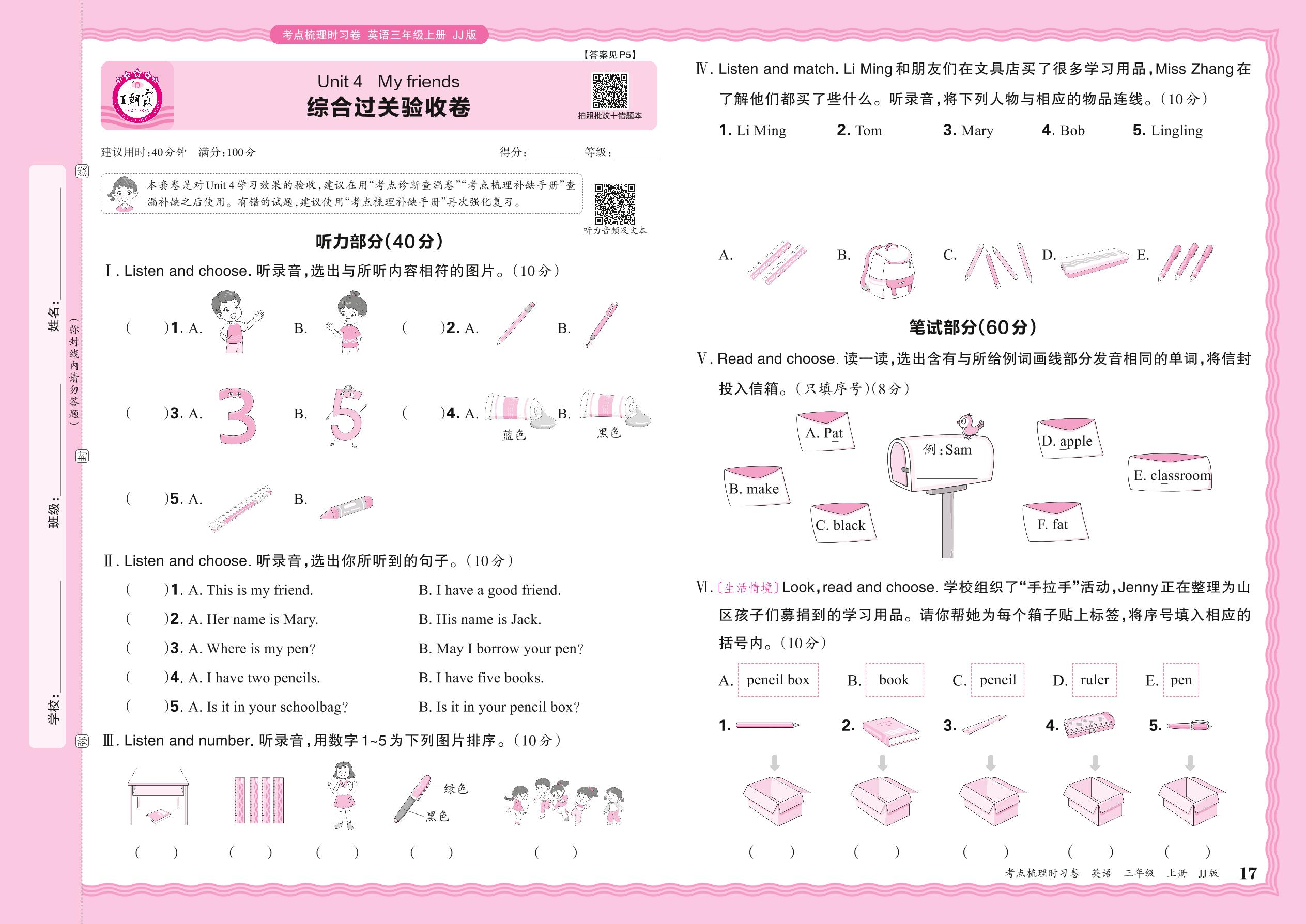 三年级英语冀教版(2024)上册单元卷