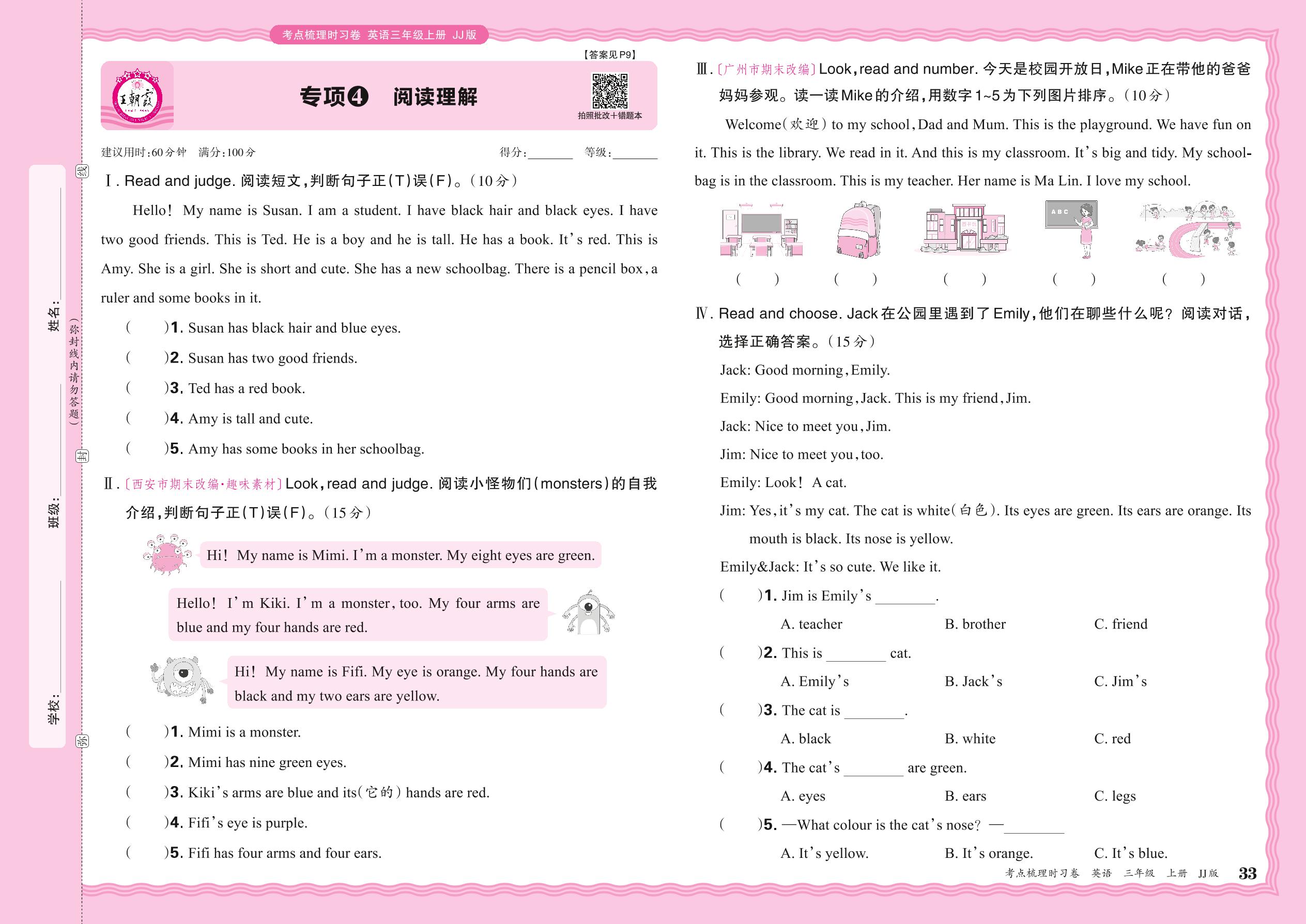 三年级英语冀教版(2024)上册专项卷
