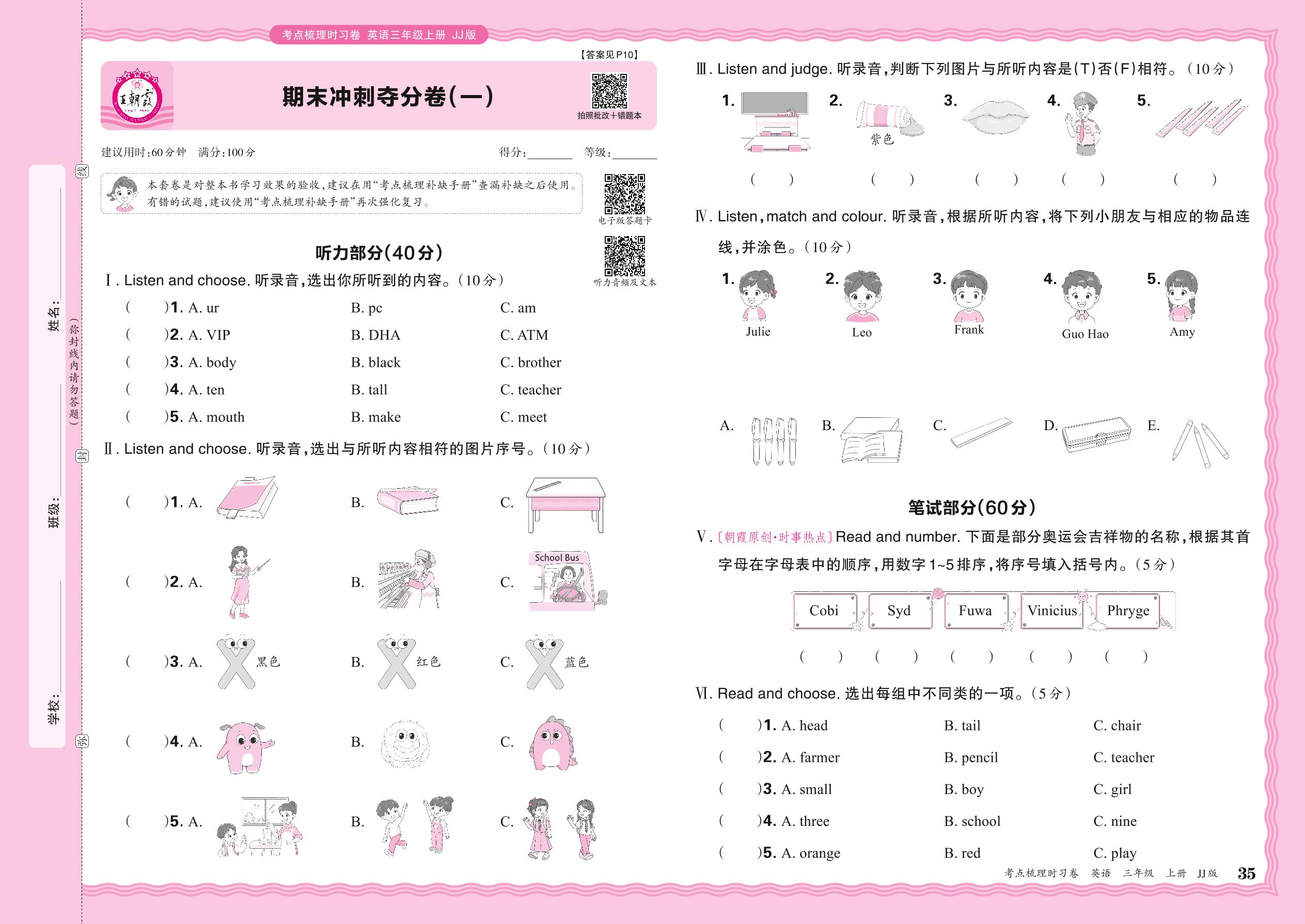 2024秋上册三年级英语冀教版 期末冲刺夺分卷(一)