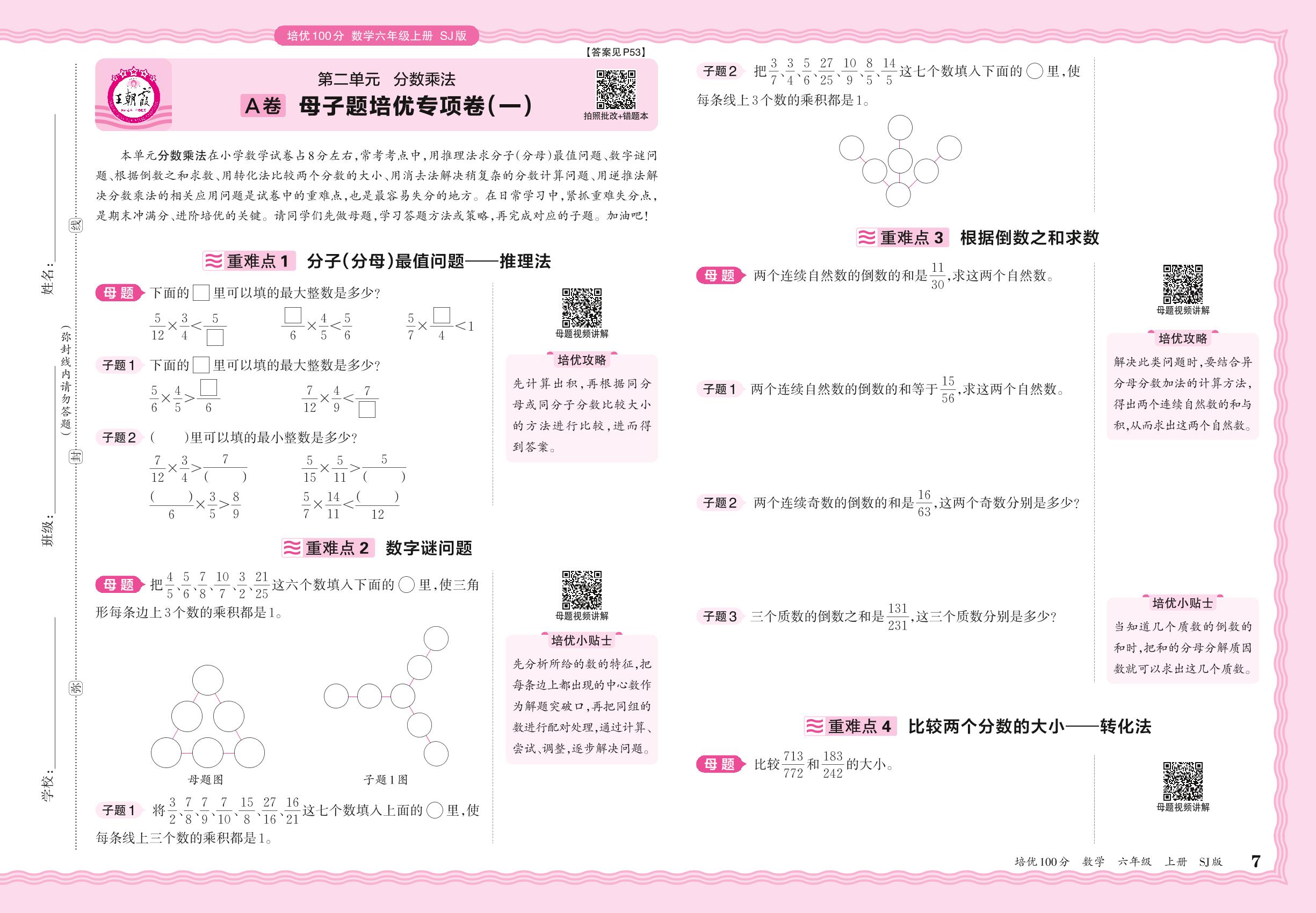 2024秋上册六年级数学苏教版 第二单元A卷 母子题培优专项卷(一)