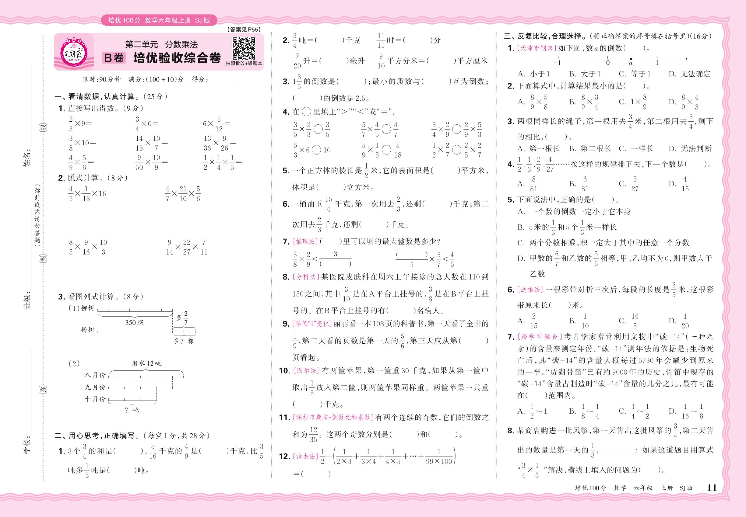 2024秋上册六年级数学苏教版 第二单元B卷 培优验收综合卷