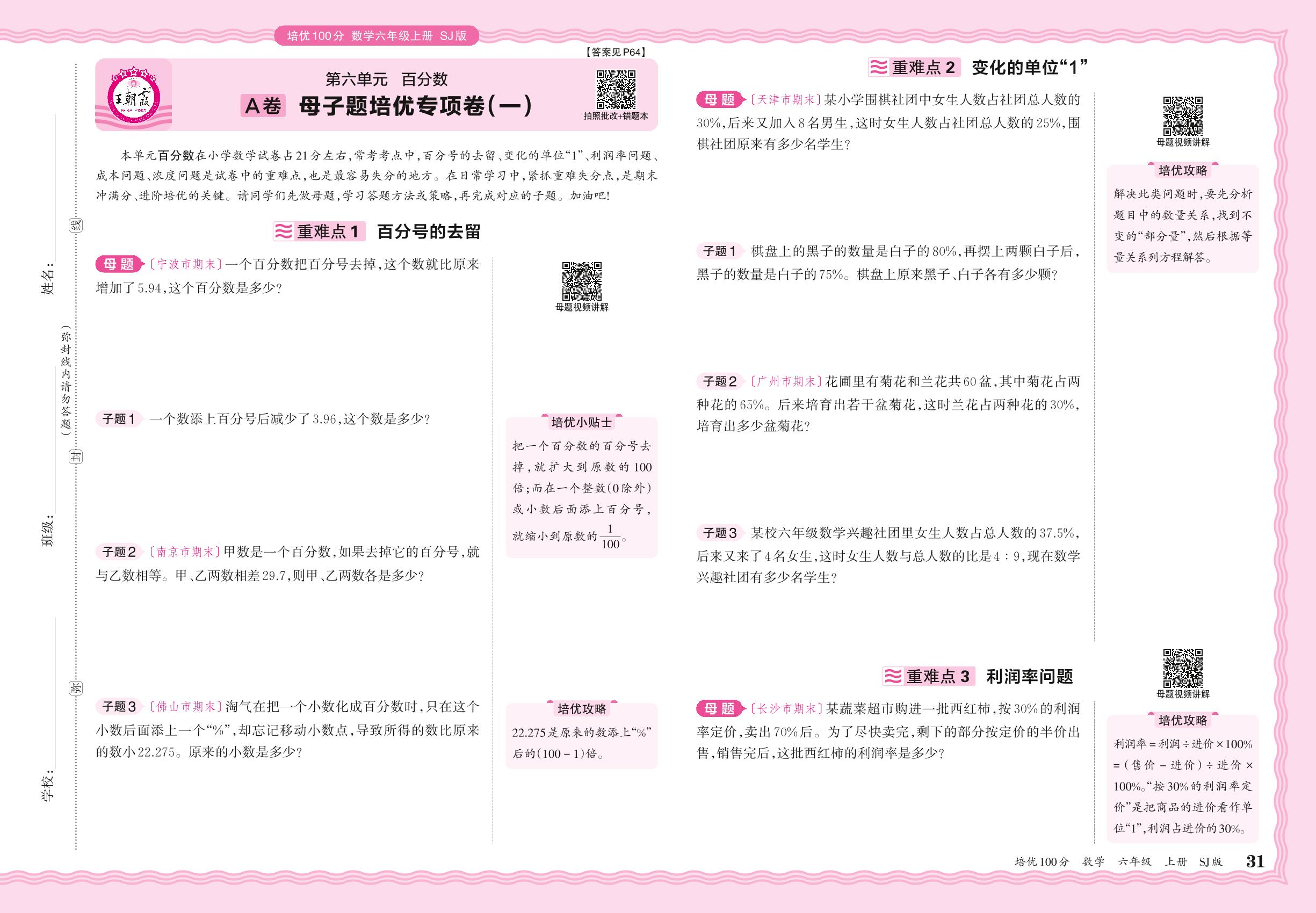 2024秋上册六年级数学苏教版 第六单元A卷 母子题培优专项卷(一)