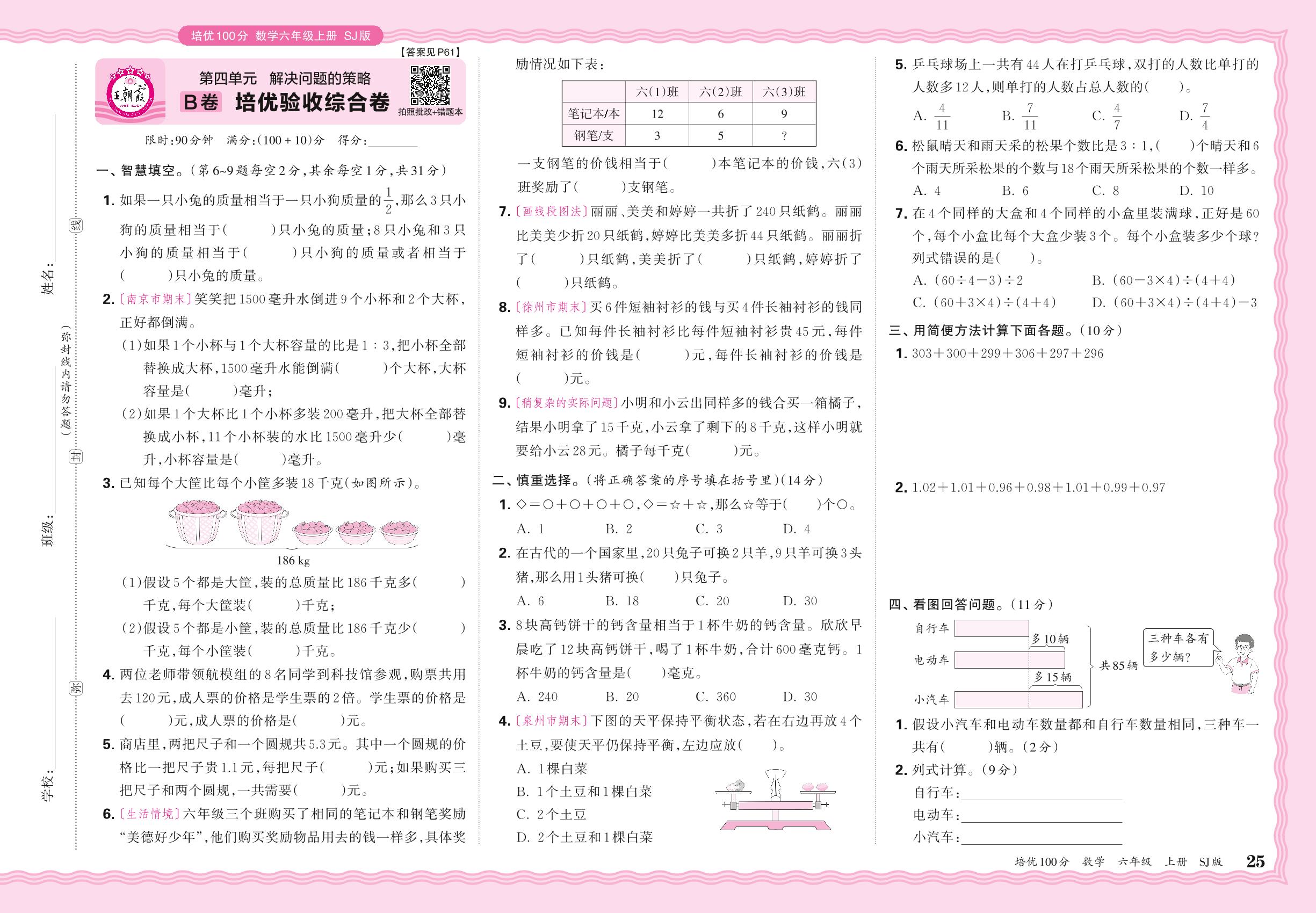 2024秋上册六年级数学苏教版 第四单元B卷 培优验收综合卷
