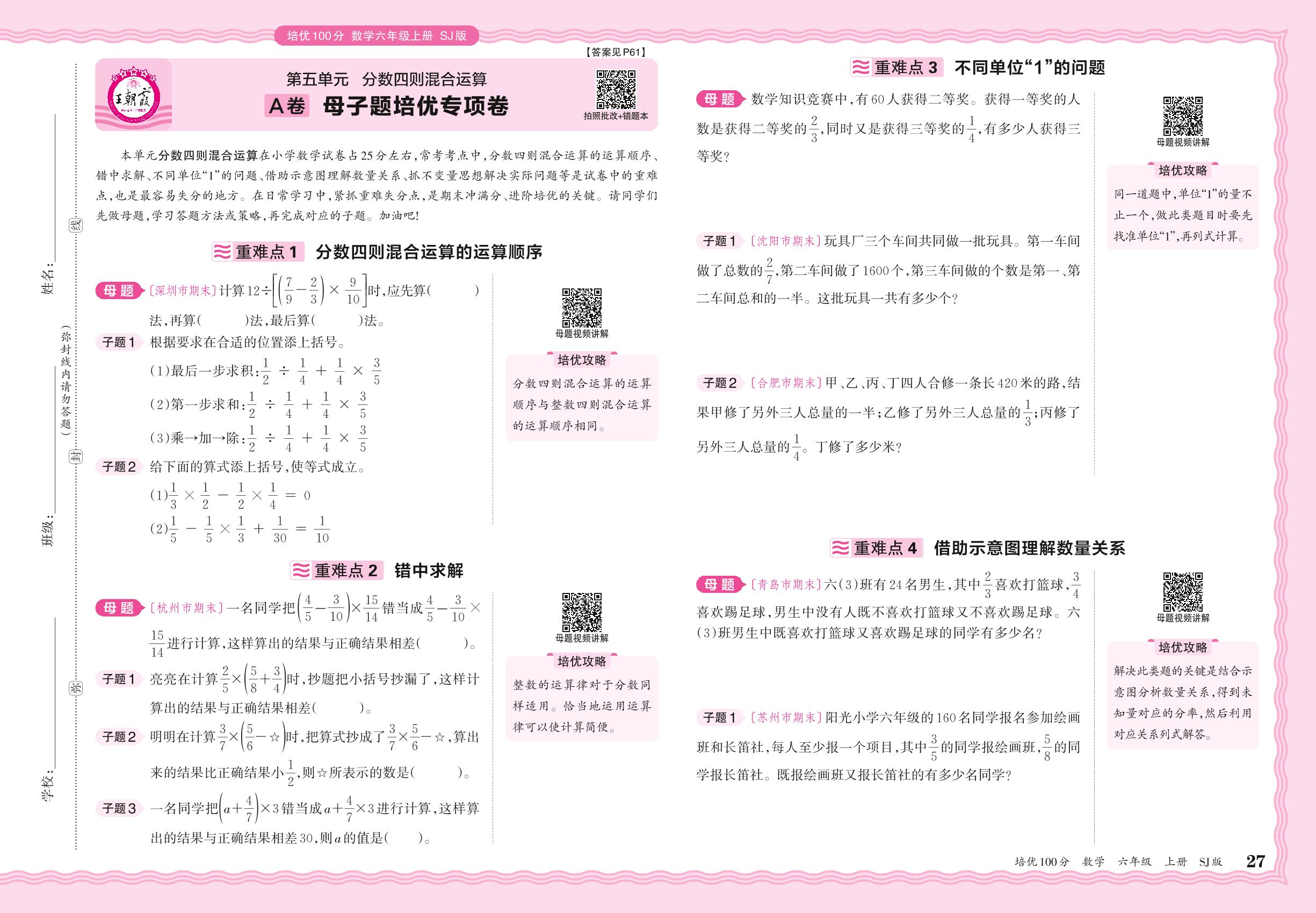 2024秋上册六年级数学苏教版 第五单元A卷 母子题培优专项卷