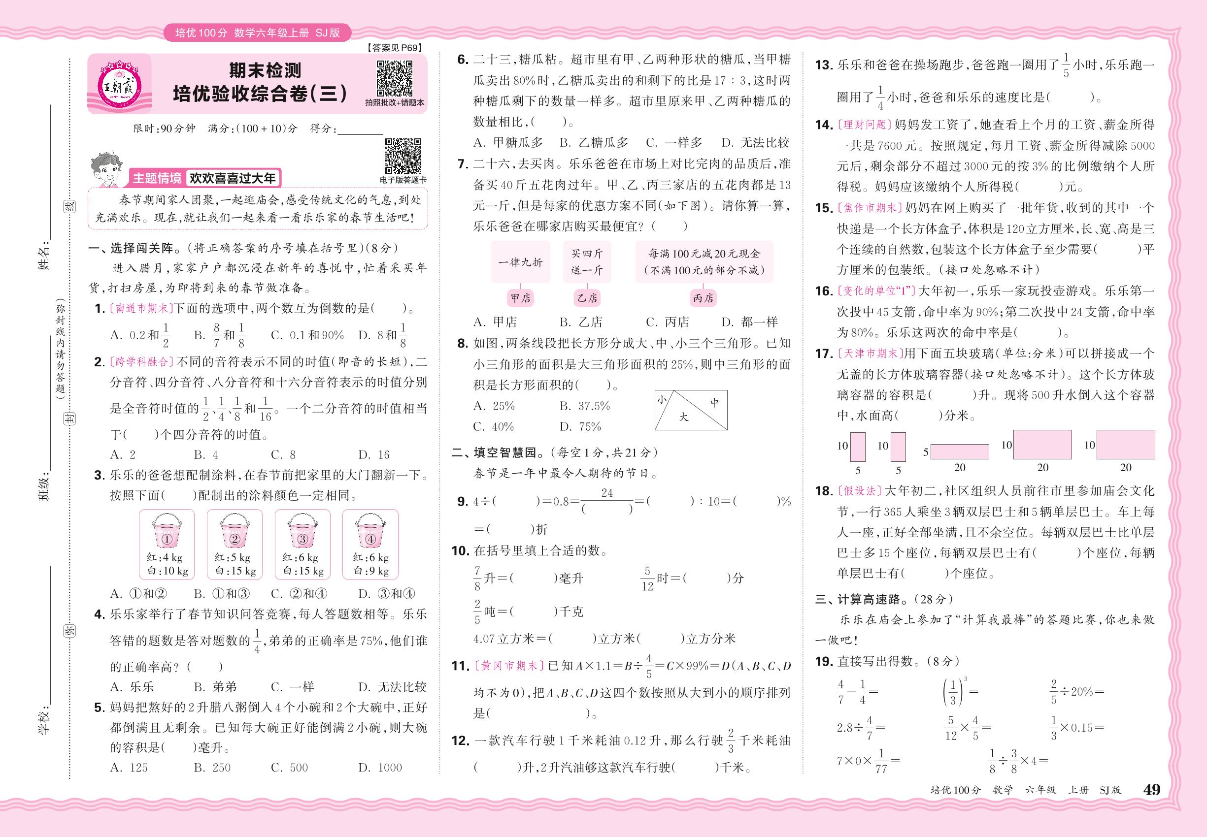 2024秋上册六年级数学苏教版 期末检测 培优验收综合卷(三)