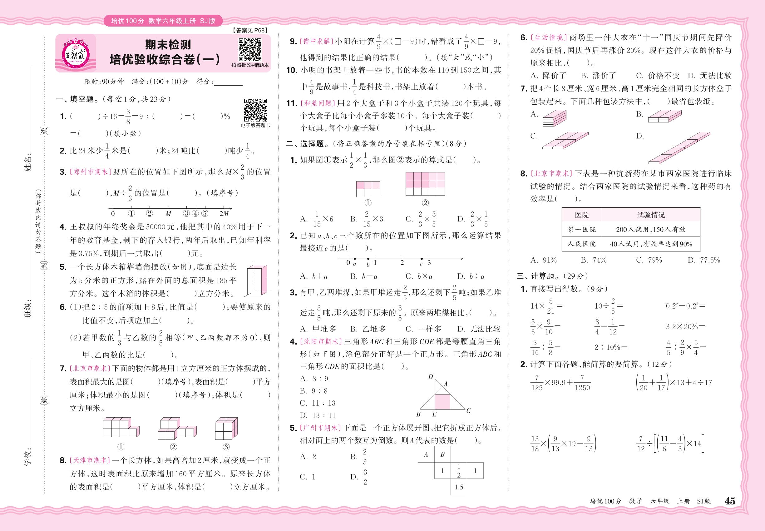 2024秋上册六年级数学苏教版 期末检测 培优验收综合卷(一)