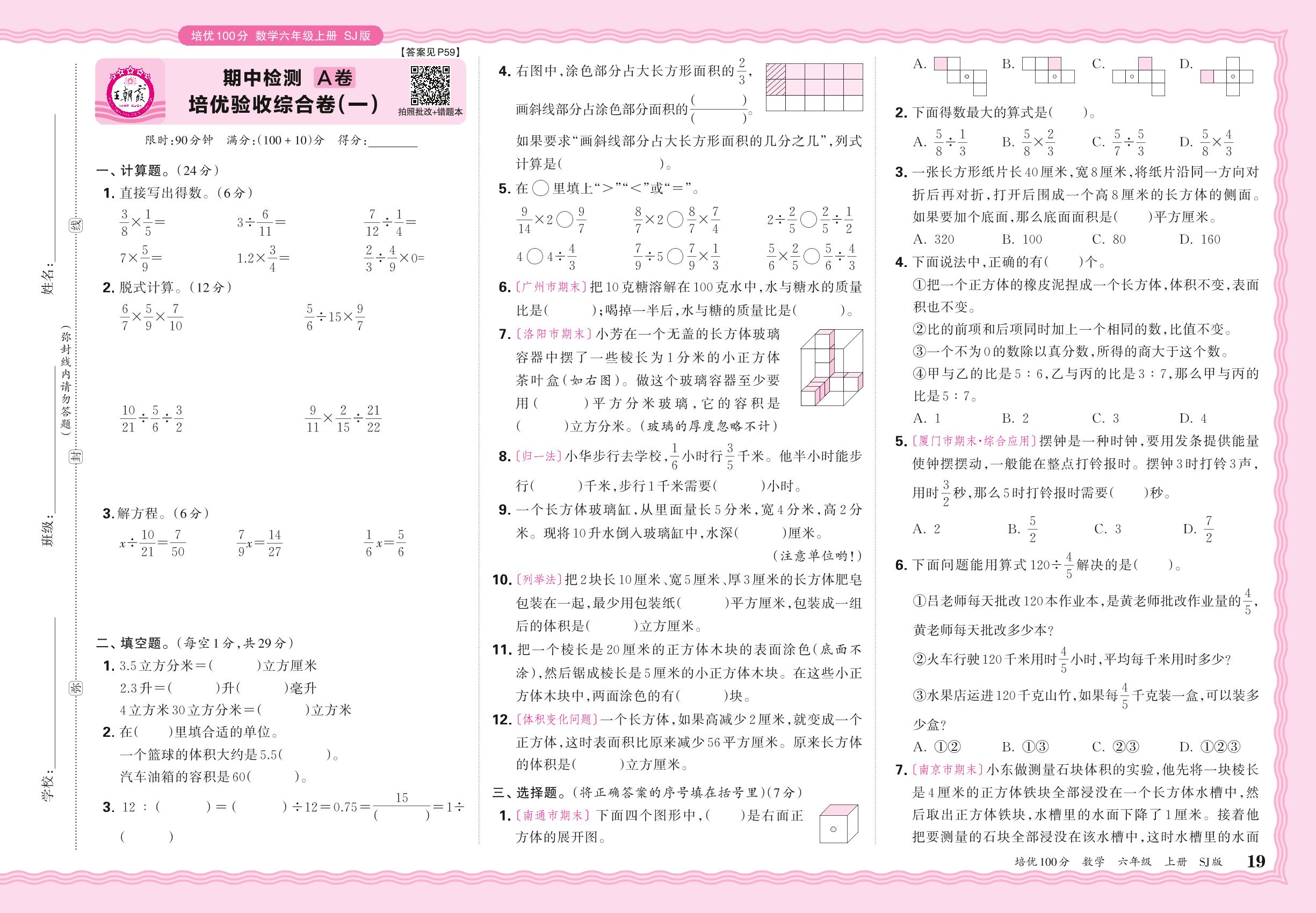 2024秋上册六年级数学苏教版 期中检测A卷 培优验收综合卷(一)