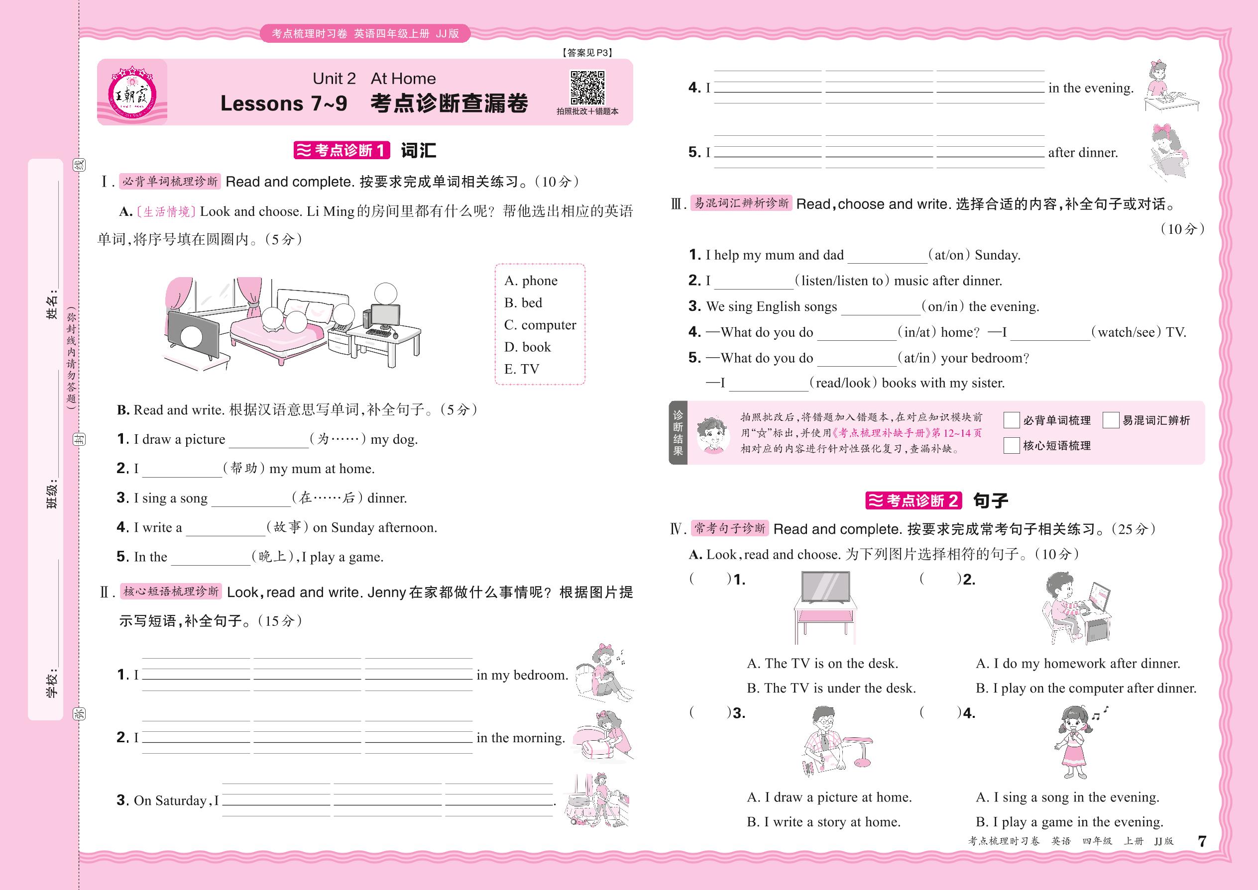 2024秋上册四年级英语冀教版 Unit 2 Lessons 7~9 考点诊断查漏卷