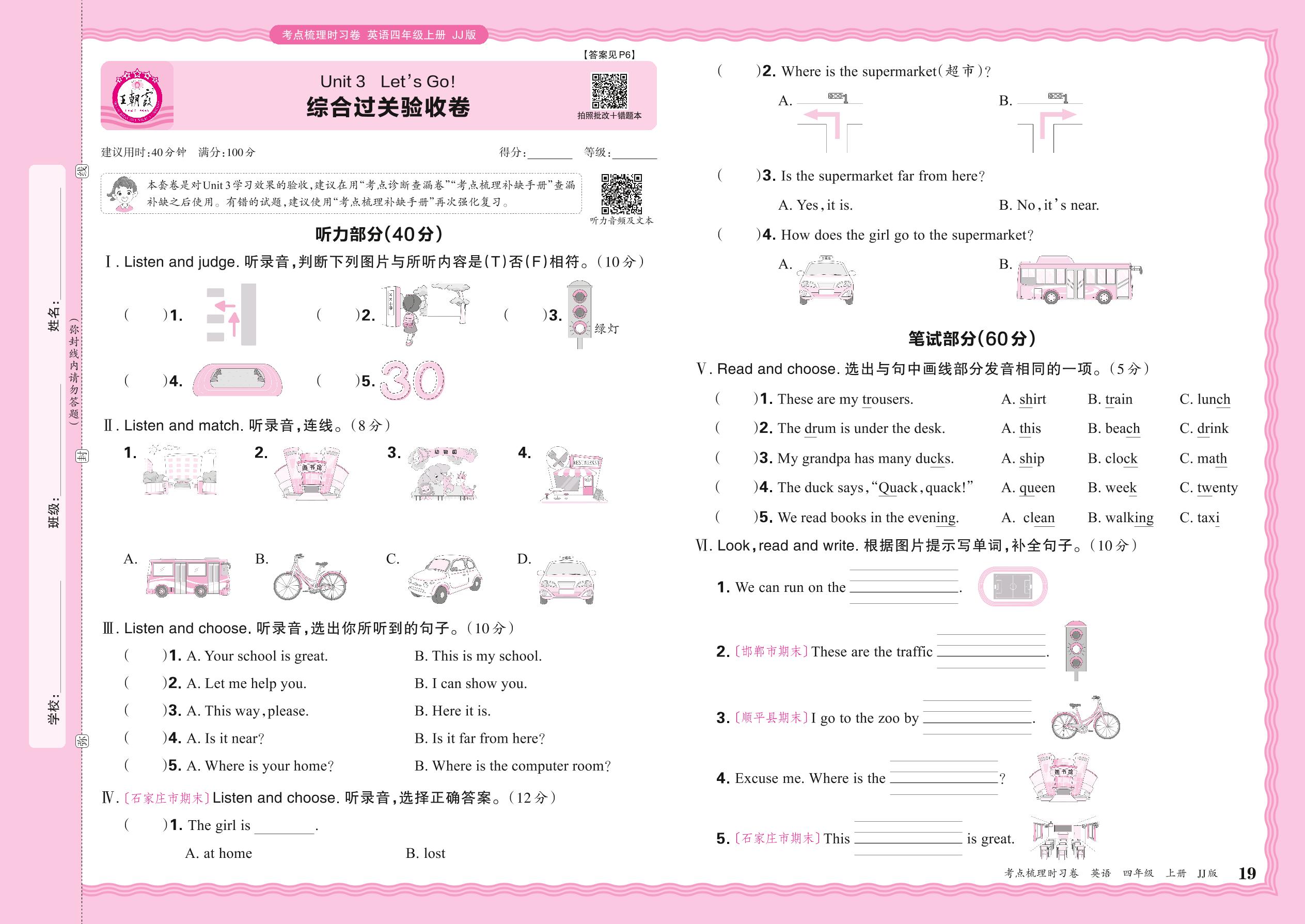 2024秋上册四年级英语冀教版 Unit 3 综合过关验收卷
