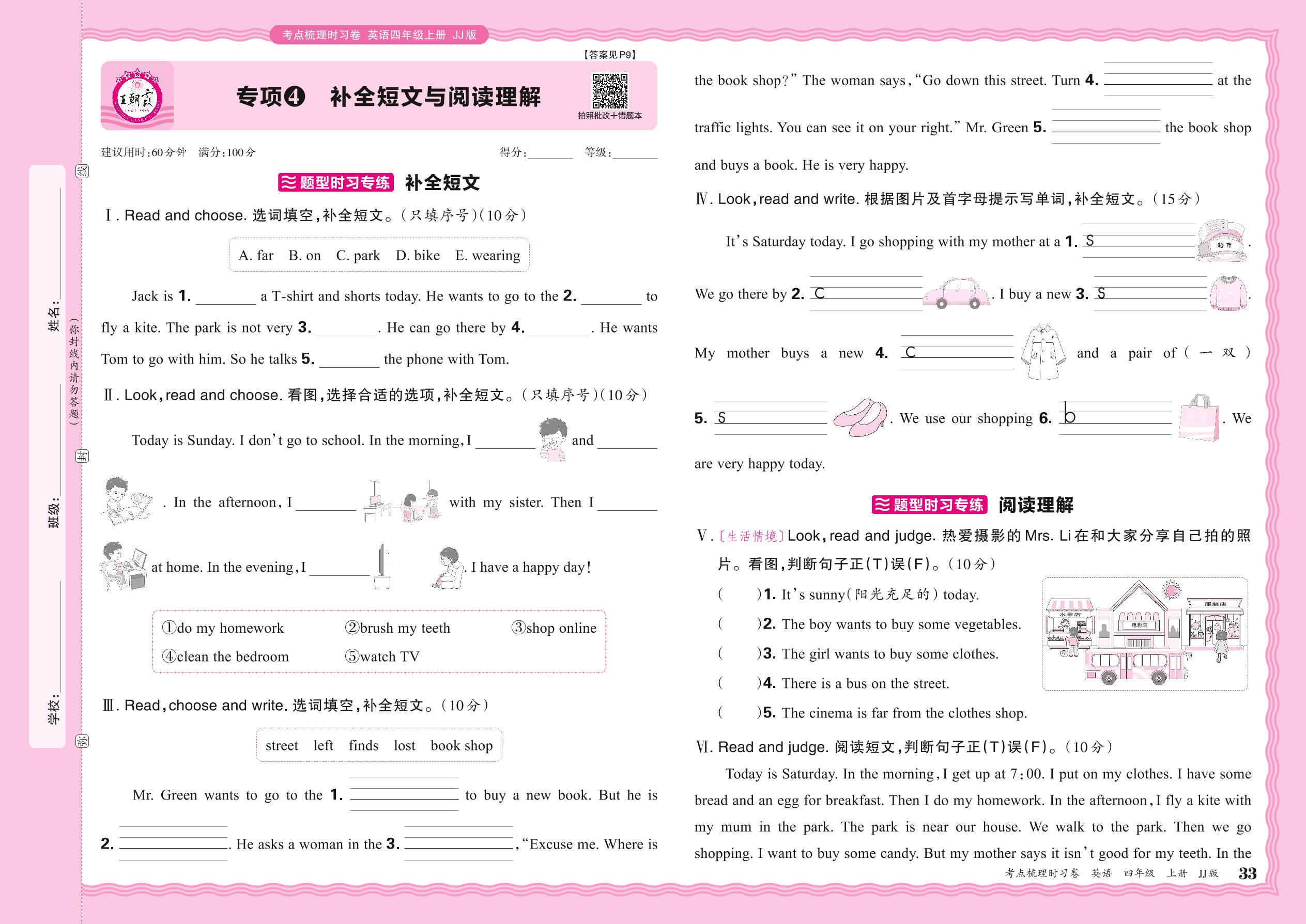 2024秋上册四年级英语冀教版 期末专项卷KD版·补全短文与阅读理解【4】