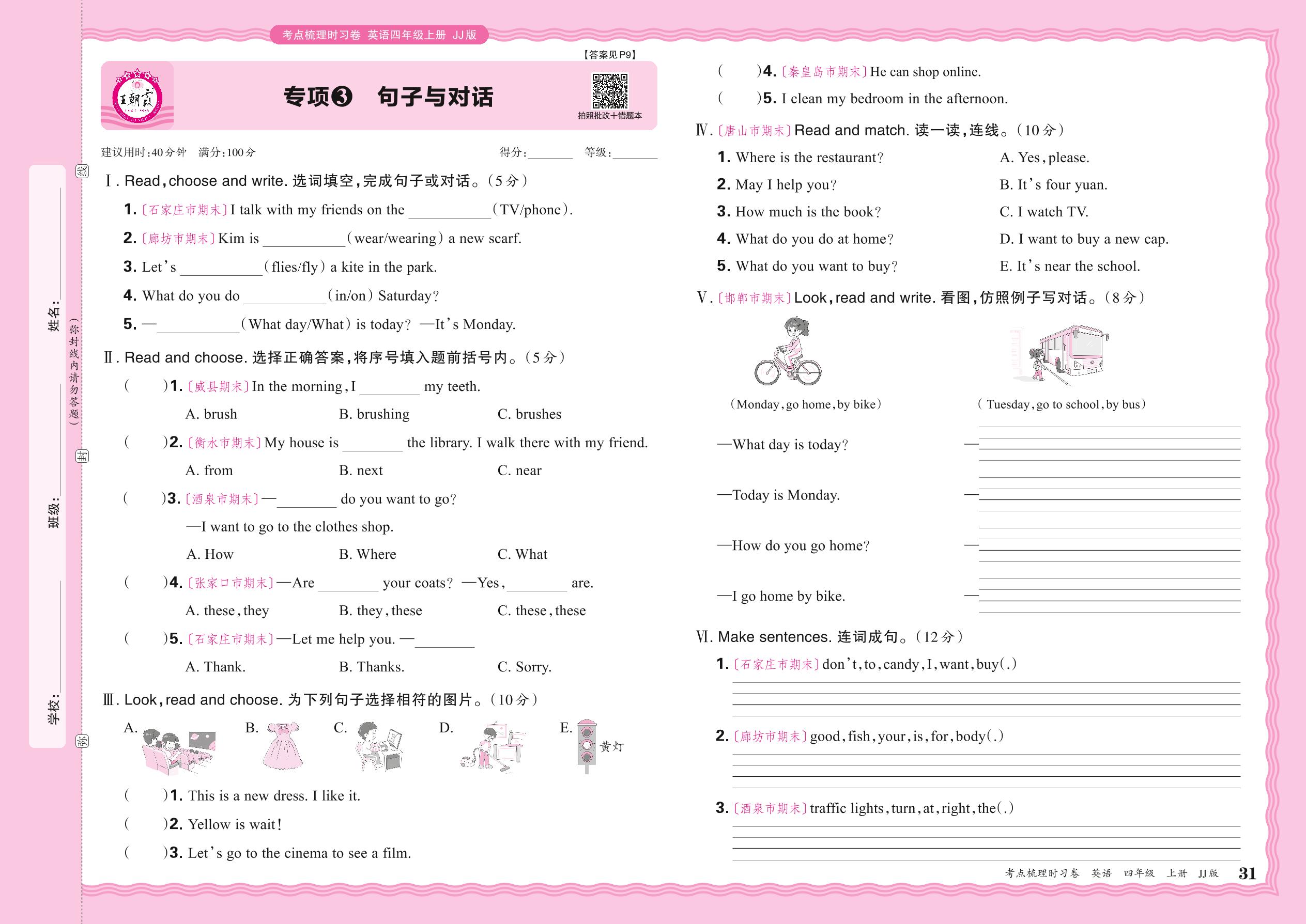 2024秋上册四年级英语冀教版 期末专项卷KD版·句子与对话【3】