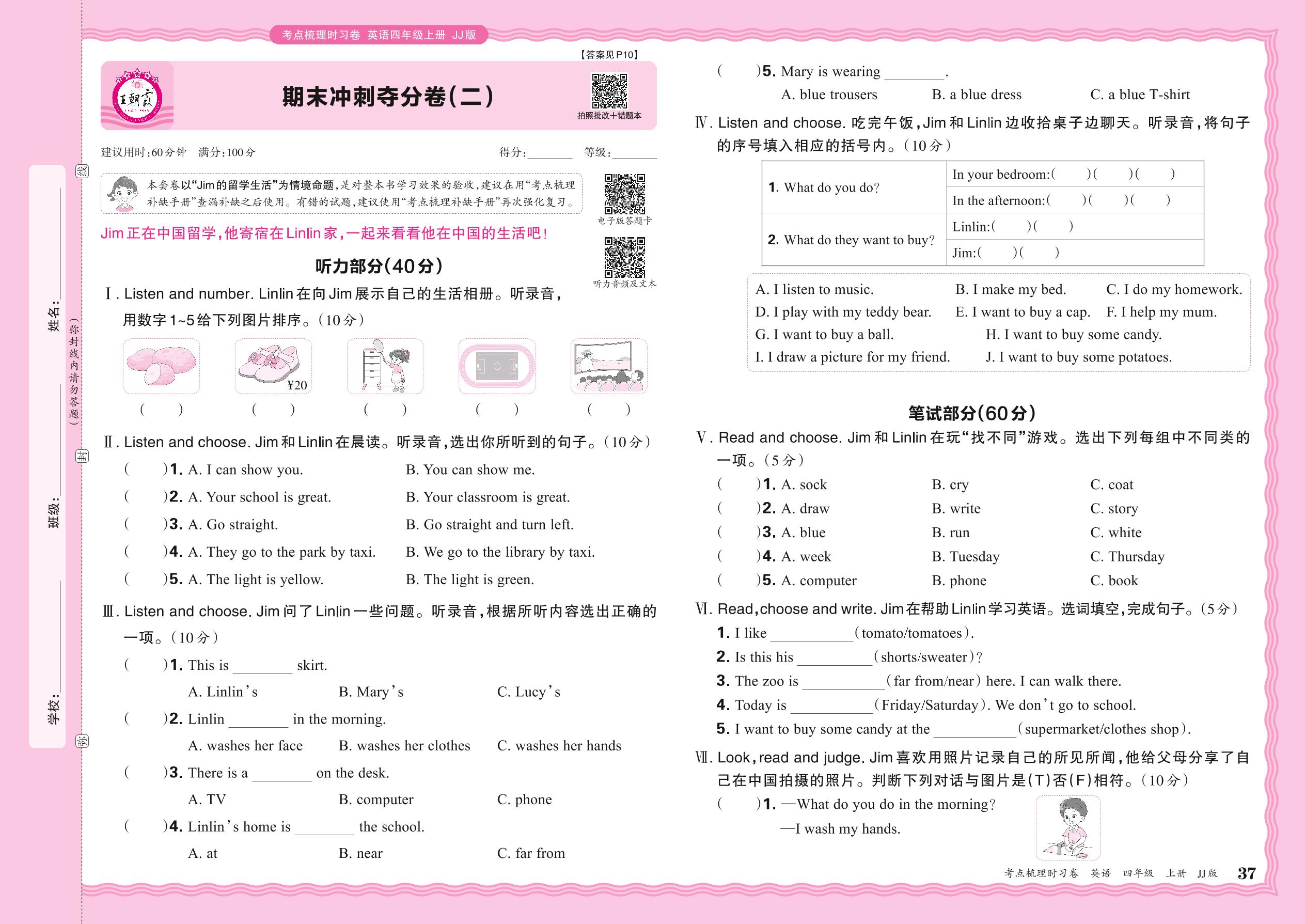 2024秋上册四年级英语冀教版 期末冲刺夺分卷(二)