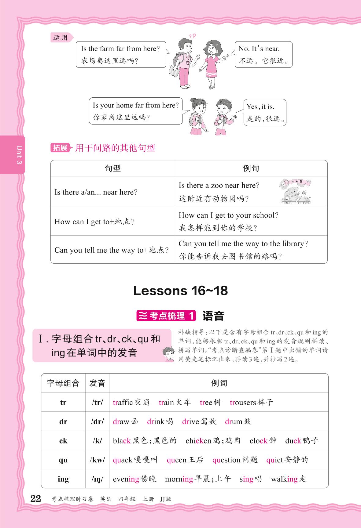 2024秋上册四年级英语冀教版 考点梳理补缺手册——Unit 3 Lessons 16~18