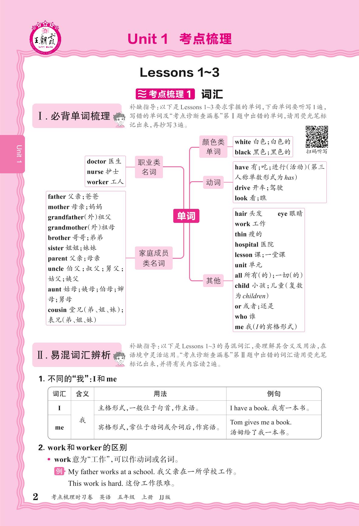 2024秋上册五年级英语冀教版 考点梳理补缺手册——Unit 1 Lessons 1~3