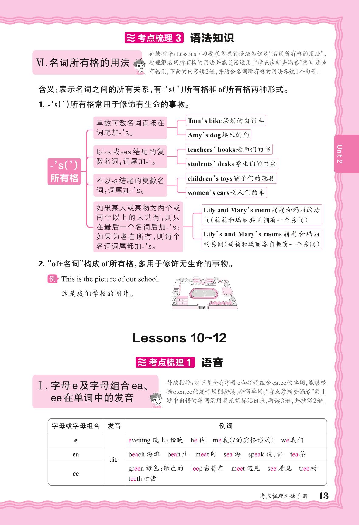 2024秋上册五年级英语冀教版 考点梳理补缺手册——Unit 2 Lessons 10~12
