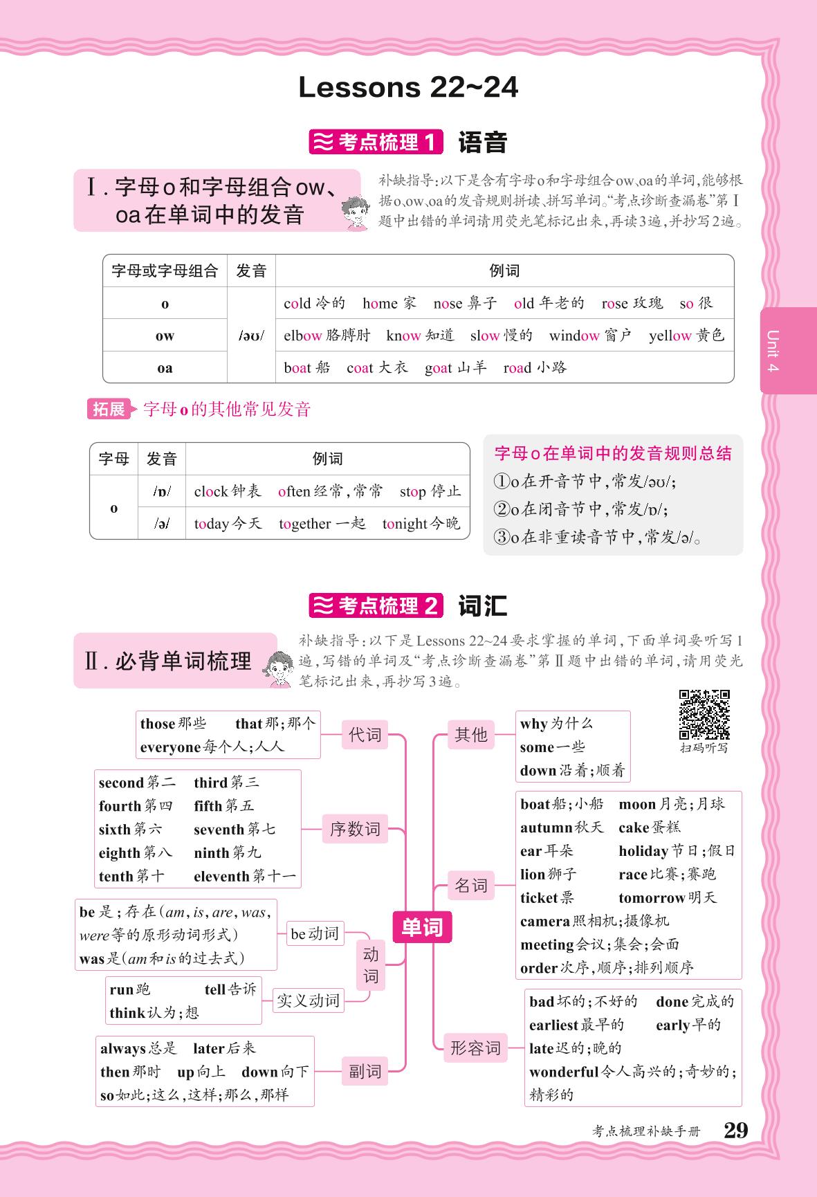 2024秋上册五年级英语冀教版 考点梳理补缺手册——Unit 4 Lessons 22~24