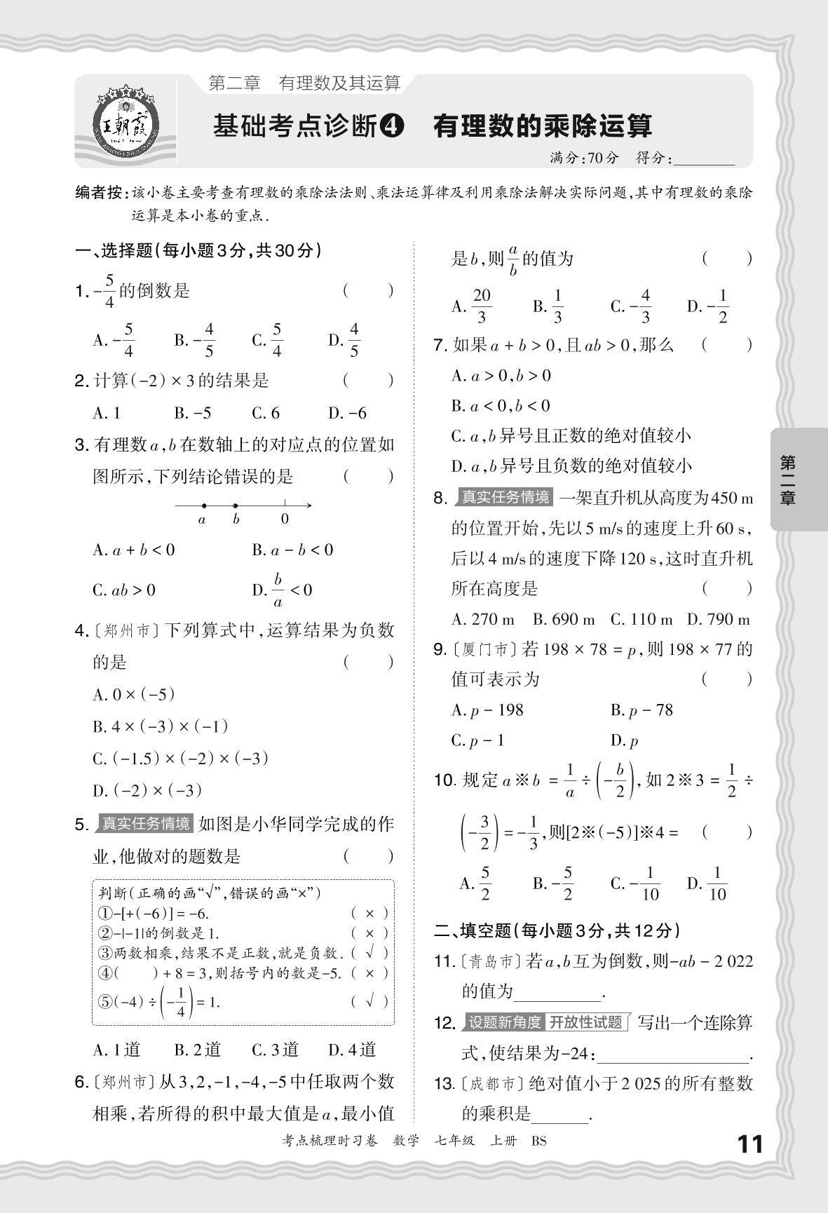2024秋上册七年级数学北师版 第二章 基础考点诊断 有理数的乘除运算【4】